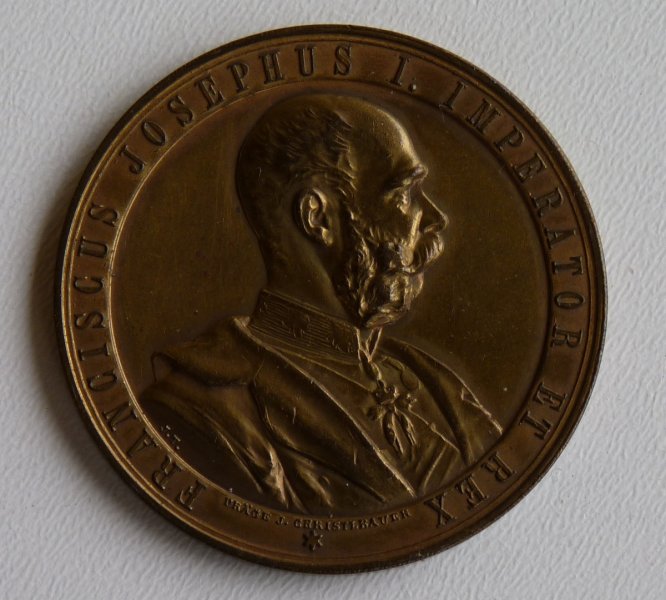 Medaile s portrétem císaře Františka Josefa - 1892 / na památku návštěvy jeho veličenstva v Brně, na druhé straně - rakouský erb , orlice a císařská koruna