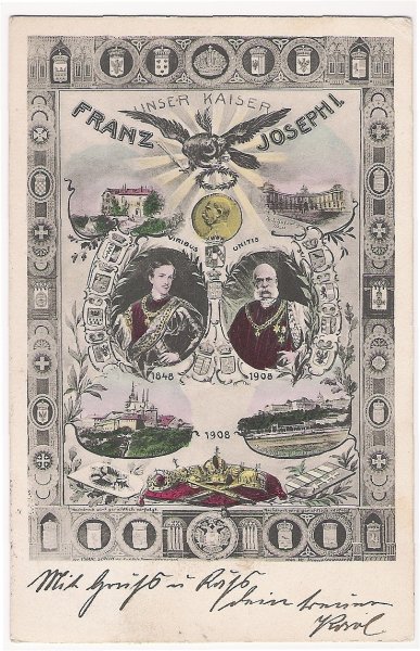 Barevná pohlednice - náš císař František Josef
