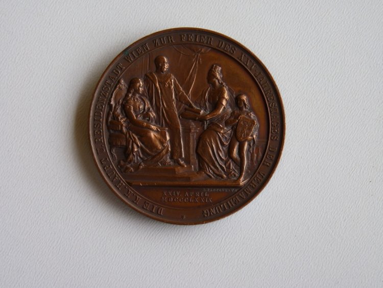 Bronzová medaile s císařem Františkem Josefem a Elisabeth