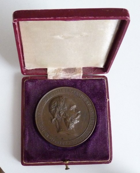 Bronzová medaile s portrétem císaře Františka Josefa v originální krabičce