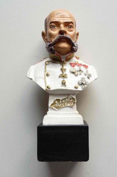 Busta císaře Františka Josefa - novodobá replika z bílého plastu