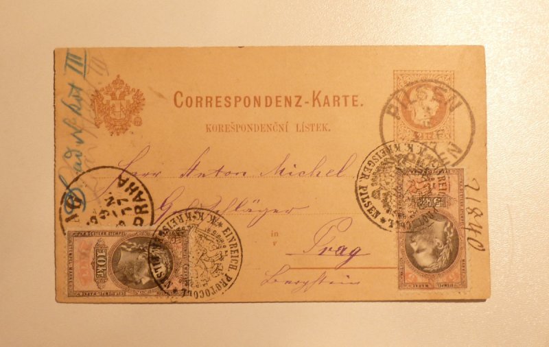 Celina 2 kr přifrankovaná 10 kr a 5 Kr kolkem