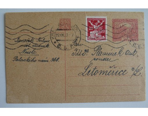 Celina dofrankovaná známkou se známkou s tiskovou vadou