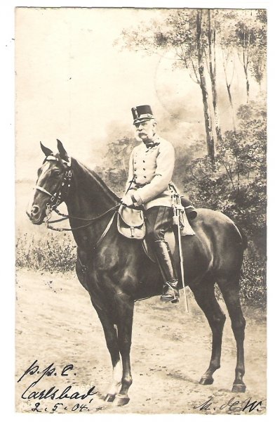 Černobílá fotografie Franz Josefa na koni