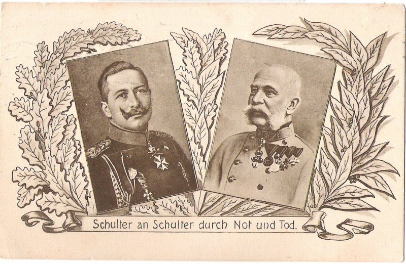 Černobílá pohlednice císařů - Franz Josef a Wilhelm