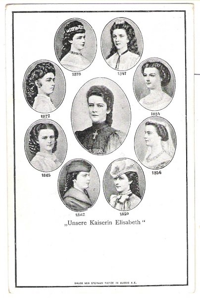 Černobílá pohlednice Elisabeth /1847 - 1878