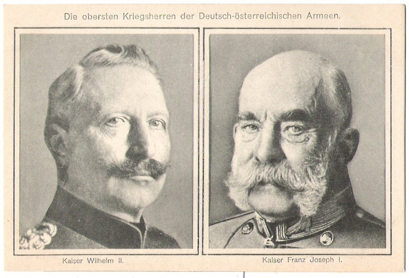 Černobílá pohlednice s císaři
