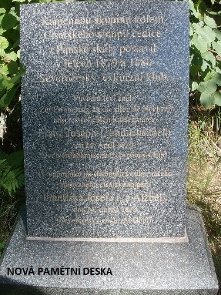 Kamennou skupinu kolem Původní text zněl: Císařského sloupu čediče Panské skály postavil v letech 1879 a 1880 Severočeský exkurzní klub