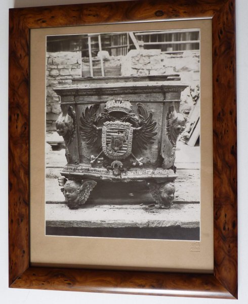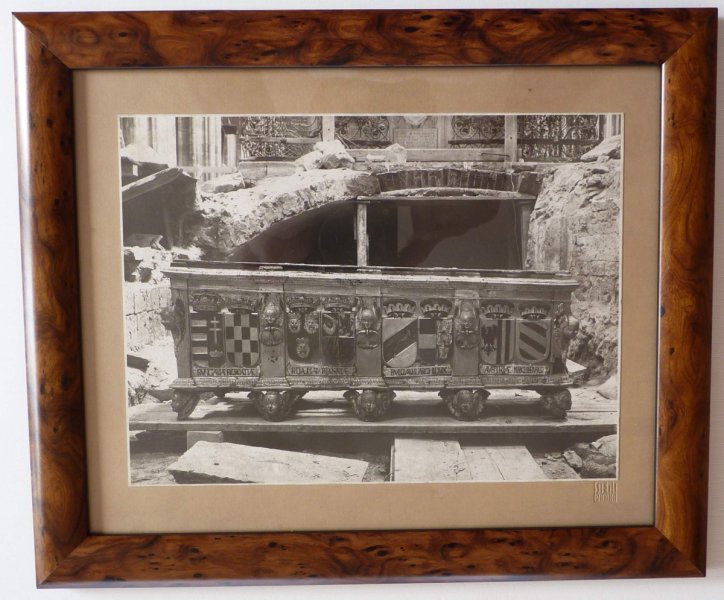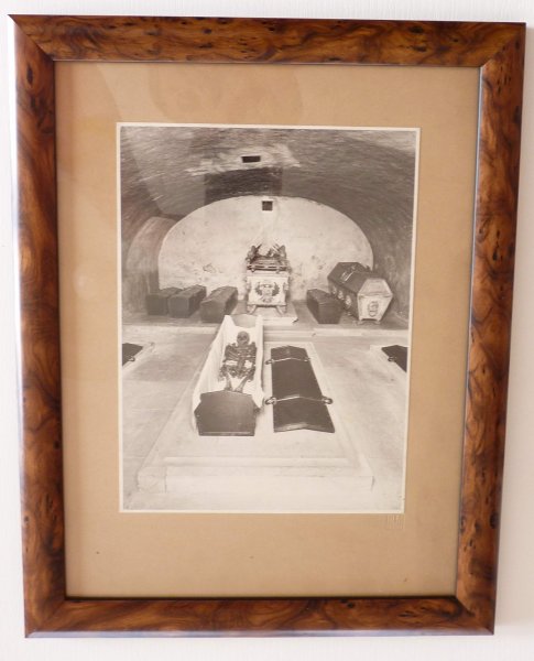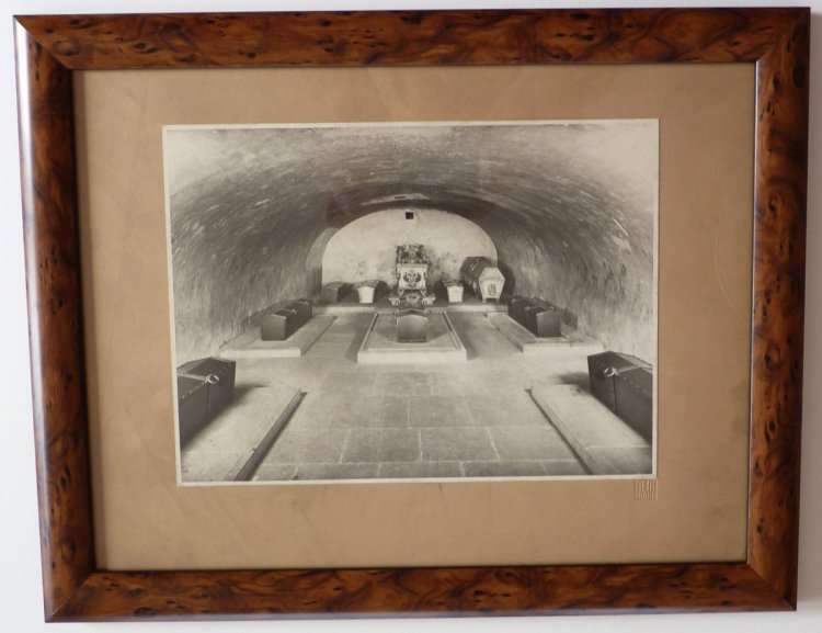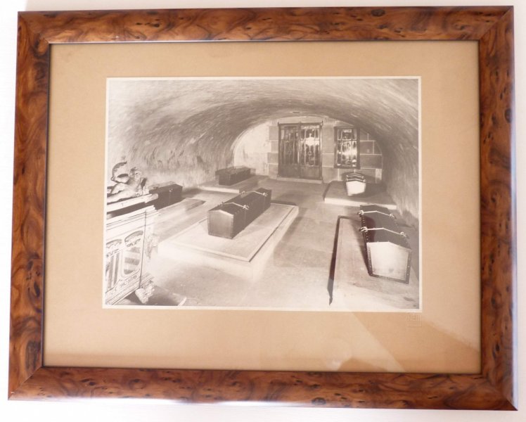 Chrám Svatého Víta - podzemní hrobka s rakvemi našich králů / originální fotografie z roku 1933 , kdy byl prováděn archeologický průzkum - pozůstatky (kostra) Karla IV. , rakev Rudolfa II. a další - signatura fotografa / mimořádné