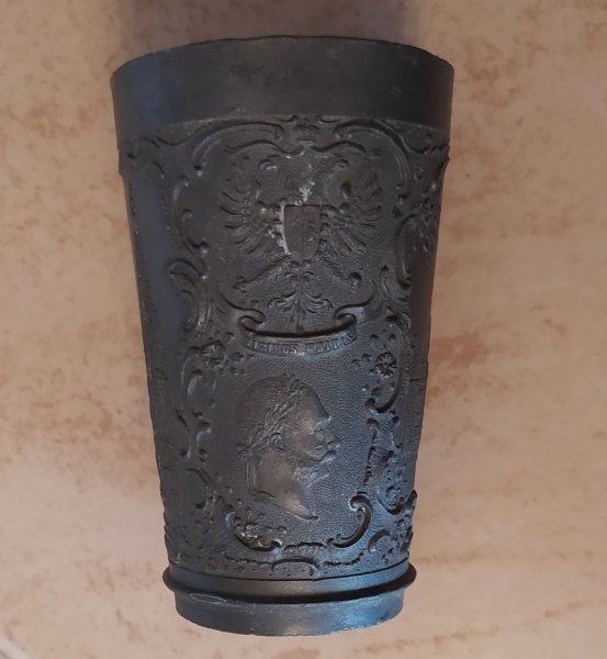Cínový pohárek FJI.