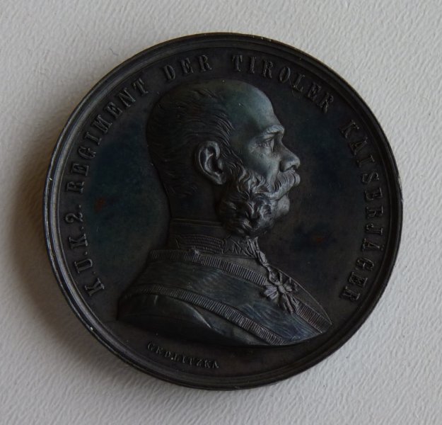 Oboustranná medaile : na jedné straně je císař František Josef a na druhé straně je císařovna Elisabeth