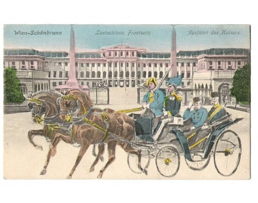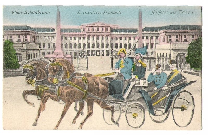 Císař František Josef projíždí před zámkem Schönbrunn