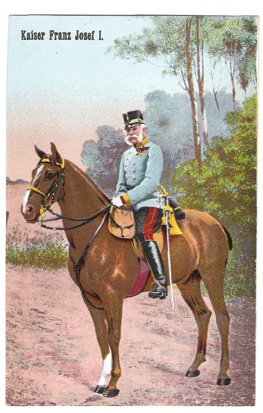 Císař Franz Josef I. na vyjížďce na koni