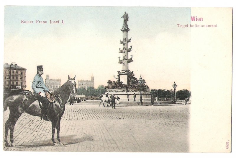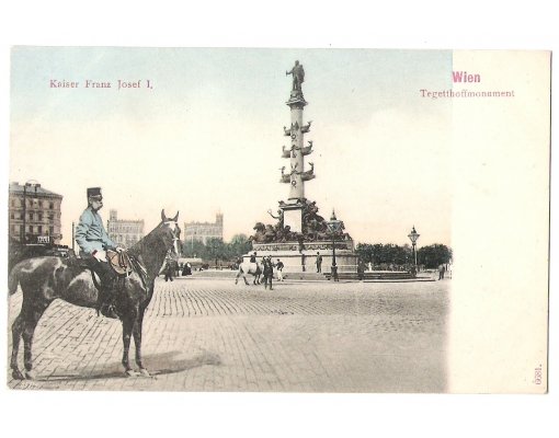 Císař Franz Josef I. před pomníkem admirála Tegetthoffa ve Vídni