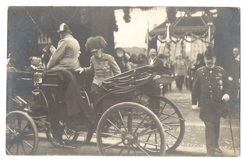 Císař Franz Josef nastupuje do připraveného kočáru