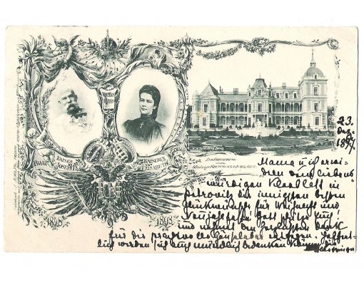 Císařovna Elisabeth a František Joseph, v pozadí jejich palác