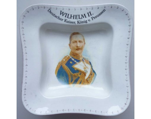 Čtyřhranný talíř s portrétem německého císaře Wilhema II. /vzácnost výskytu tohoto typu talíře je 1:100 / proto mimořádné RR , vitrínová zachovalost