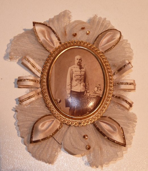Dekorační ozdoba na šerpu s portrétem císaře Františka Josefa