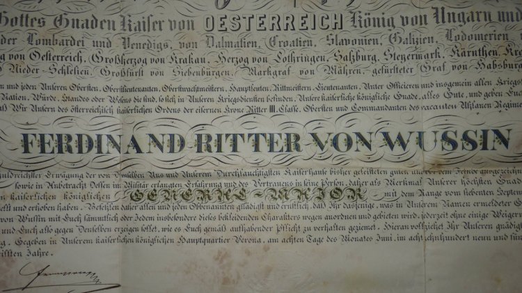 Dekret - GENERÁL MAJOR FERDINAND RITTER VON WUSSIN