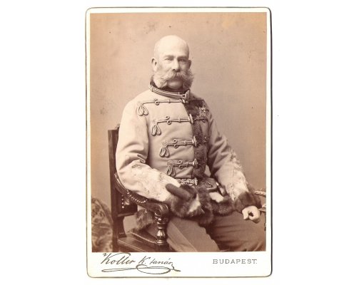 Deskové foto sedící Franz Josef, foceno v Budapešti - mimořádné