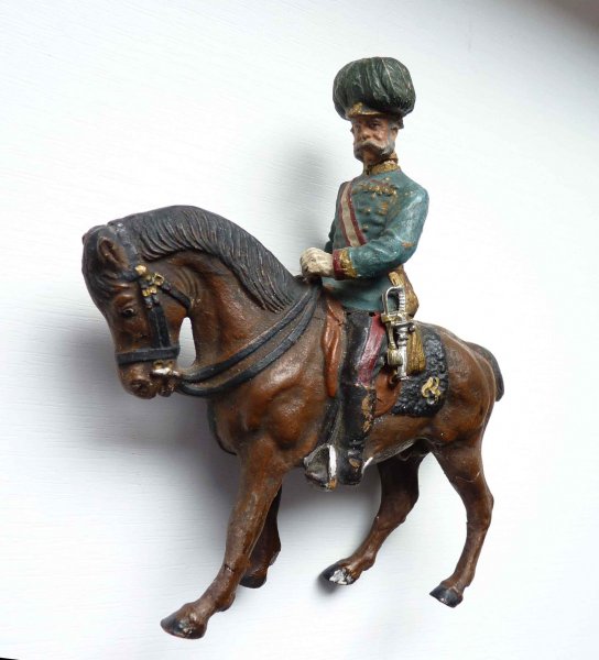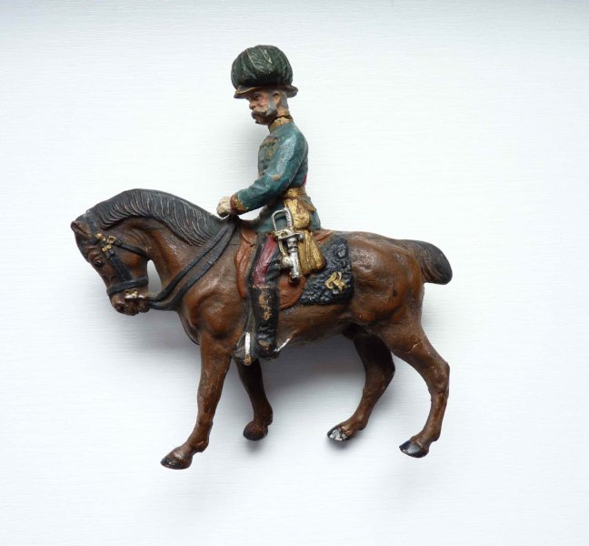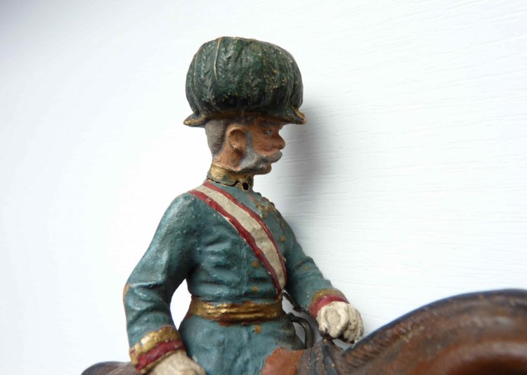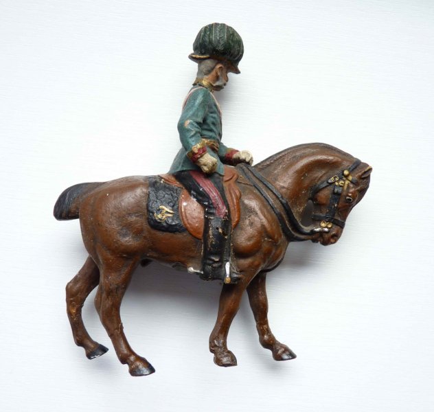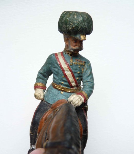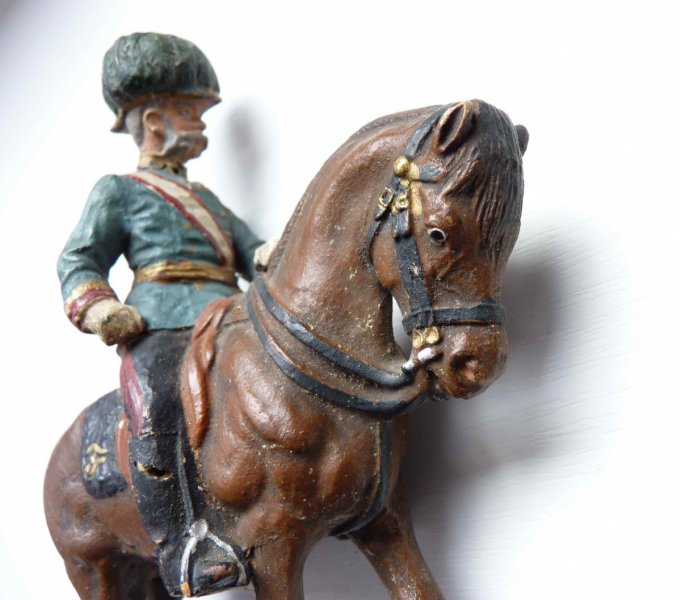 Dětská hračka - František Josef na koni / 15 cm - mimořádné , tuto hračku si nemohlo dovolit lecjaké dítě ... rodiče museli býti movitější / vyrobeno ze speciální hmoty... LINEOL