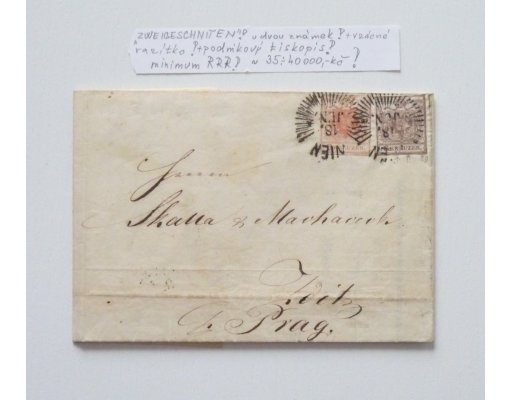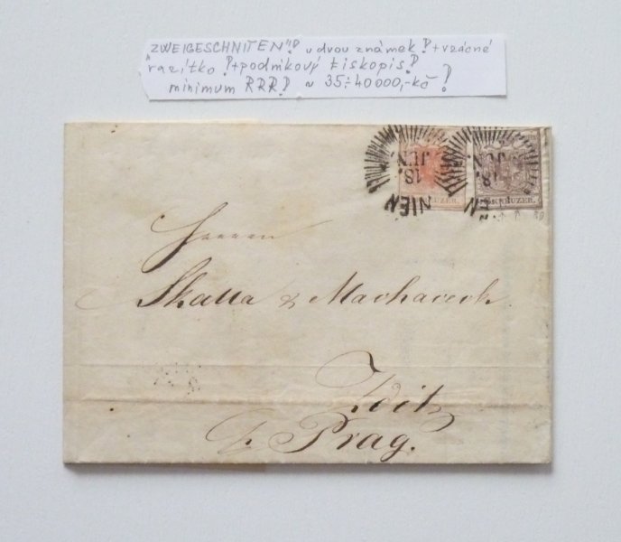 Dopis frankovaný 3 Kr a 6 Kr- Zweigenschnitten, cena záliby