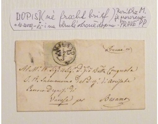 Dopis vyfrankovaný 15 centy, razítko Milano