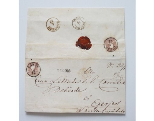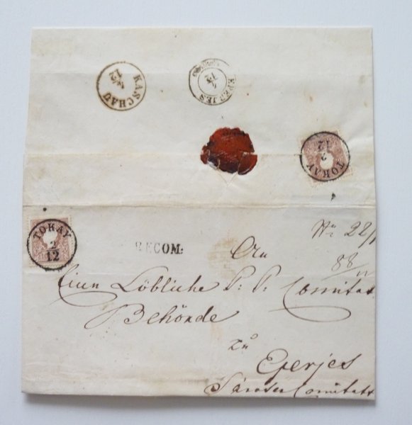Dopis vyfrankovaný 2 x 10 Kr , razítko Tokay , zoubkování obyčejné