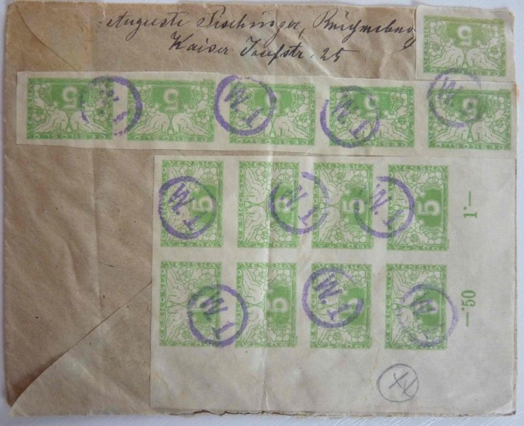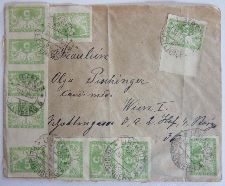 Dopis vyplacený 25ti kusy doručních známek - neobvyklá a vzácná frankatura / RRR