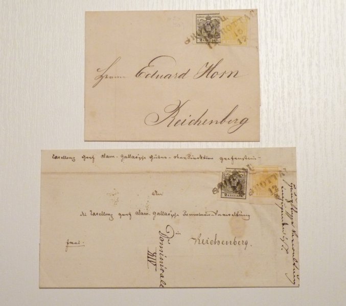 Dva dopisy vyfrankované, 1 + 2 Kr, razítko Rotau