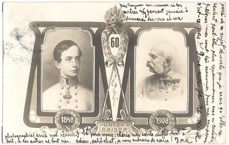 Dvojportrét Franz Josefa I., výtvarně zpracováno do hranatého orámování