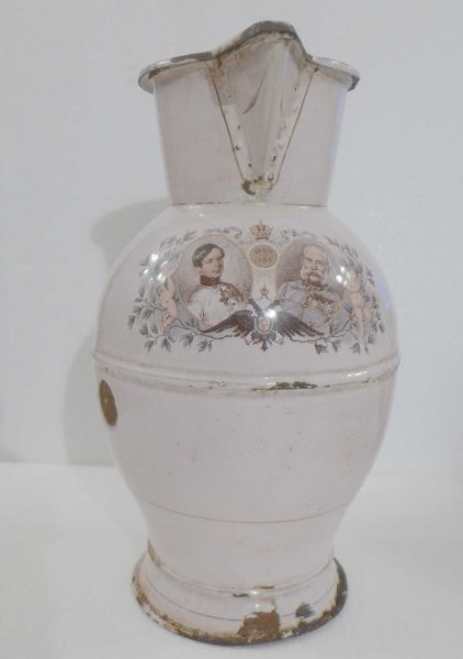 Smaltovaný džbán s víkem - portréty mladého a starého císaře Františka Josefa / mimořádné