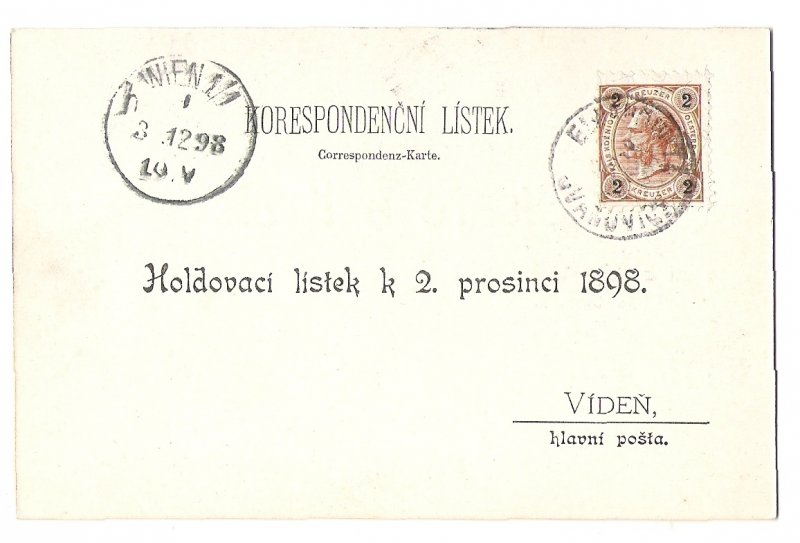 Encomiastical ticket for the 2. of December in 1898 , head Post Office in Vienna