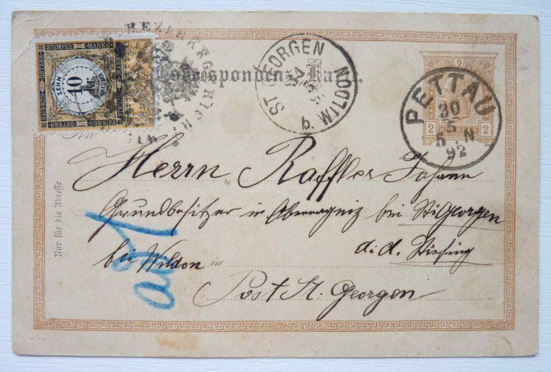 2 Kreuzer stationery franked those 10 Kreuzer stamp / interest
