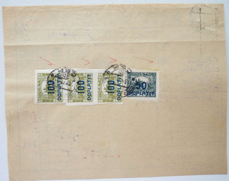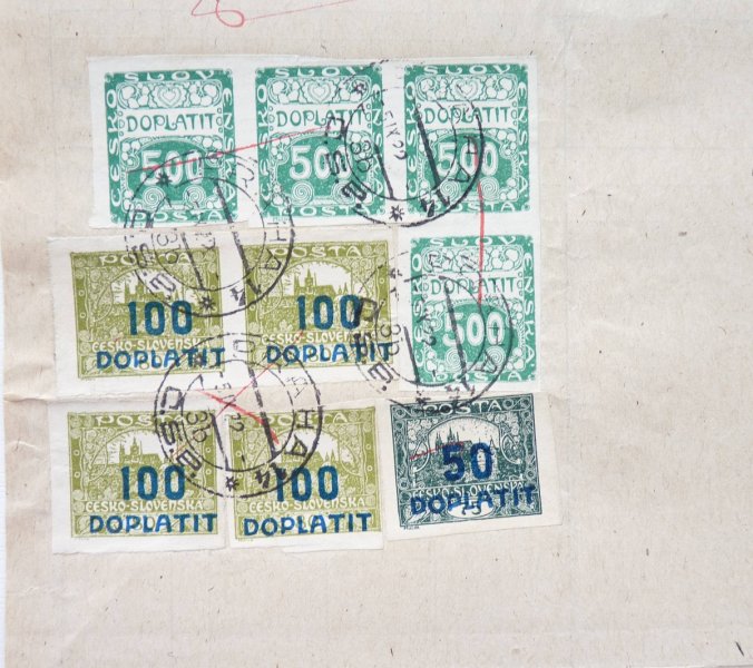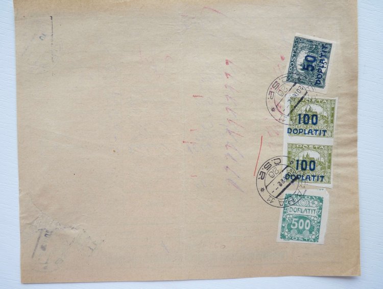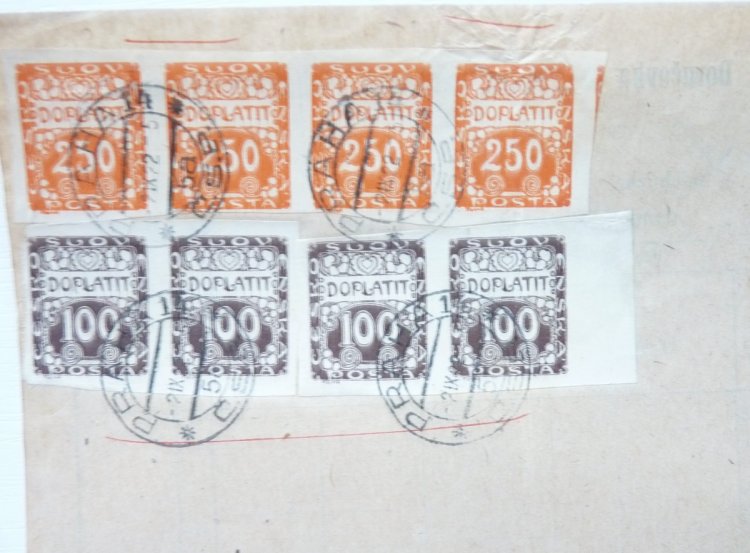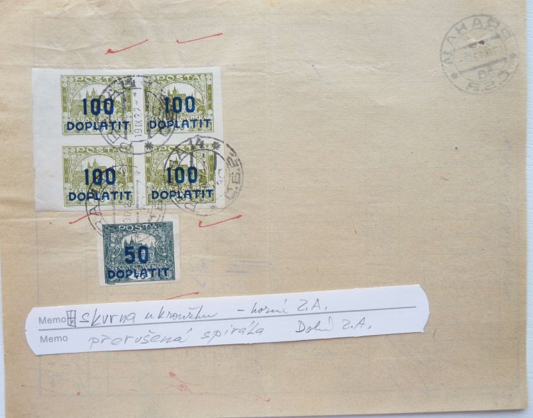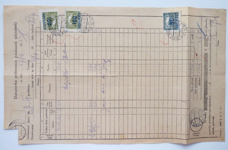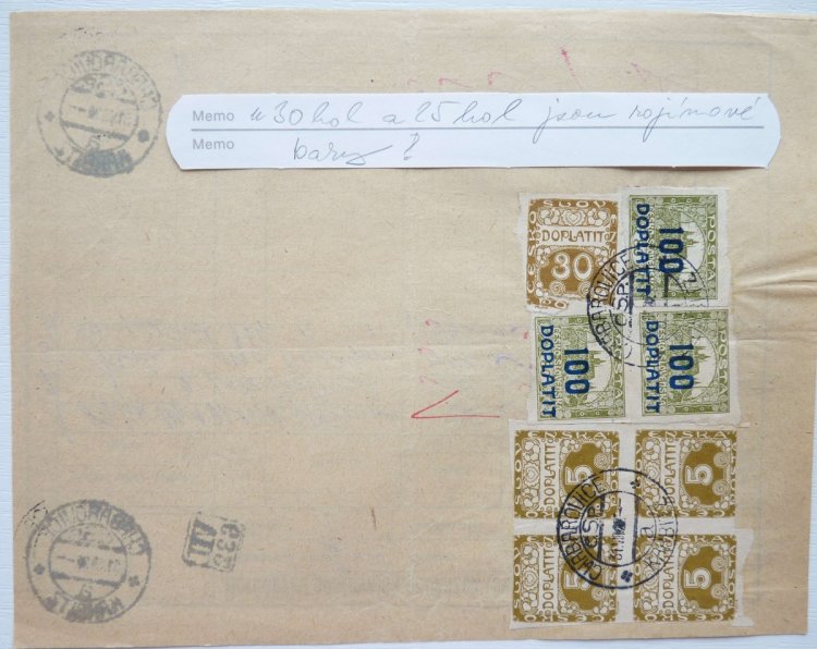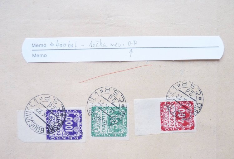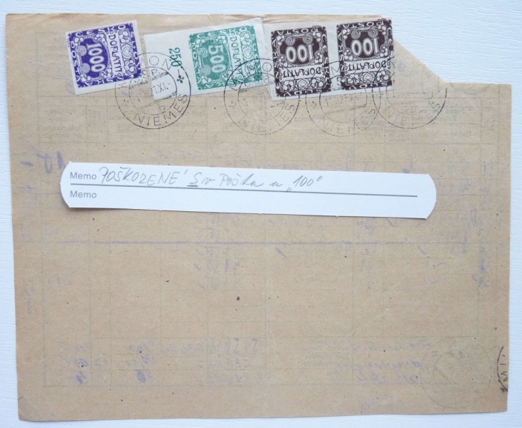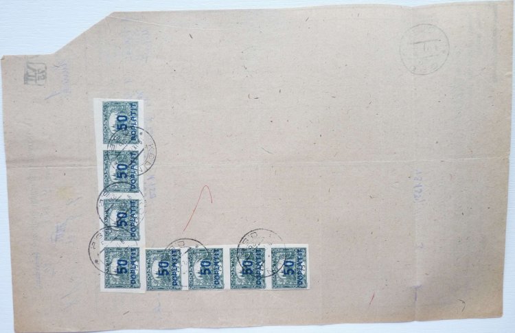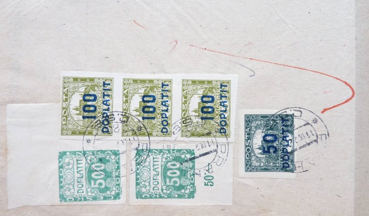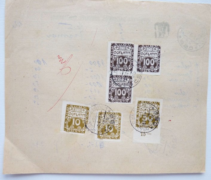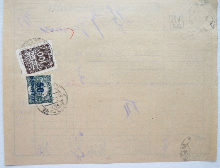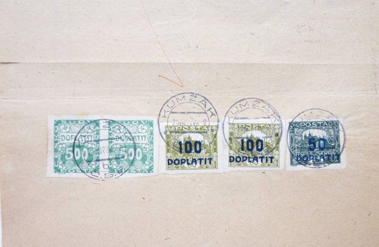 Another interesting group of delivery cards - mixed franking, a lot of defects, new variants, taken over the stamp at the beginning of the Republic of higher denominations - accounting for more cards that specific display card delivery, ... more, they found .....