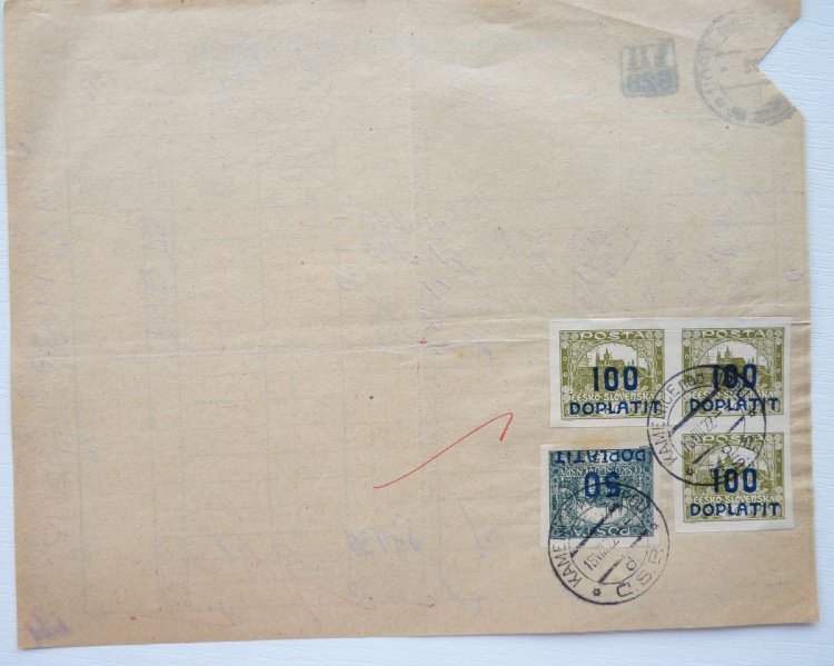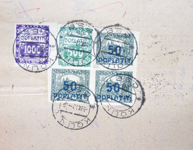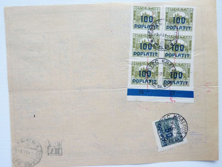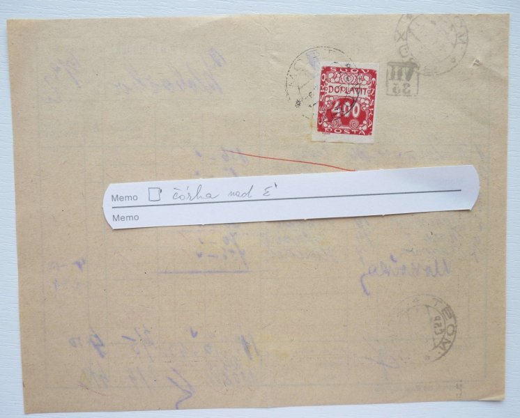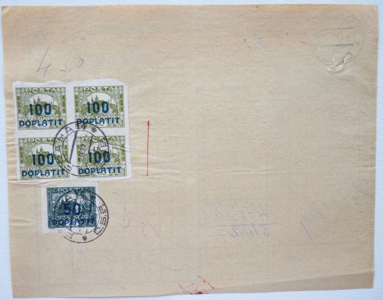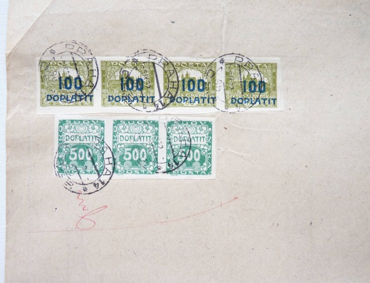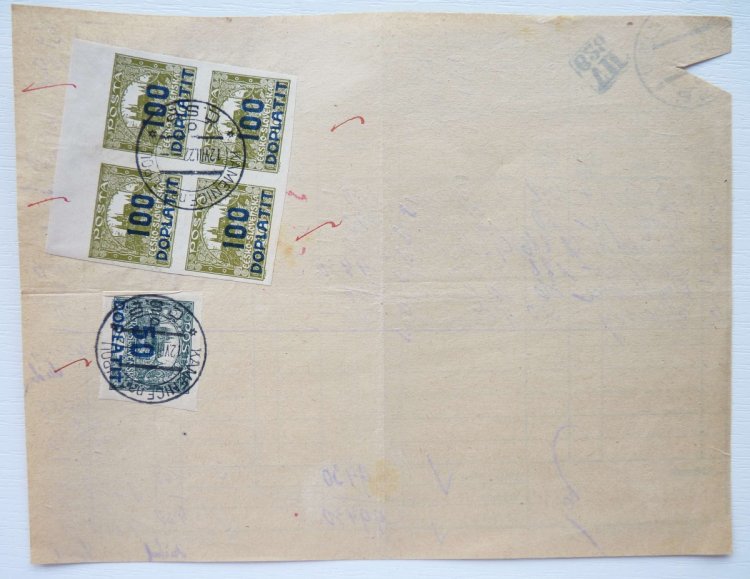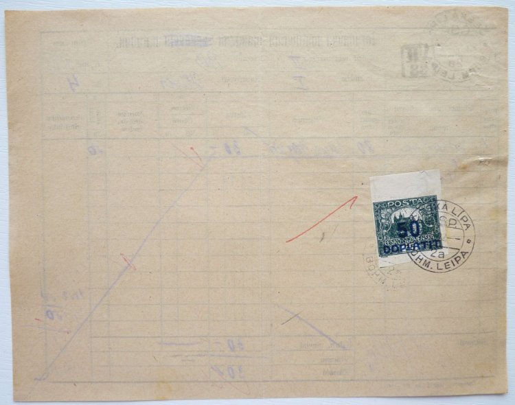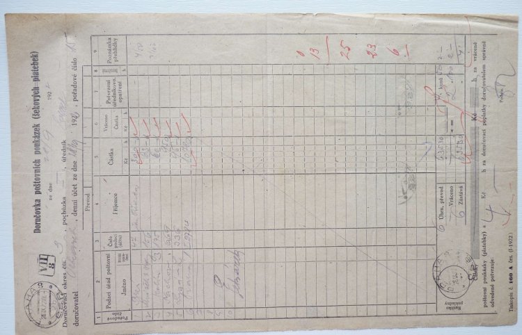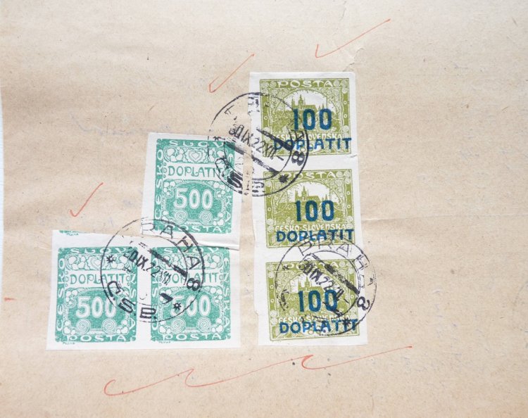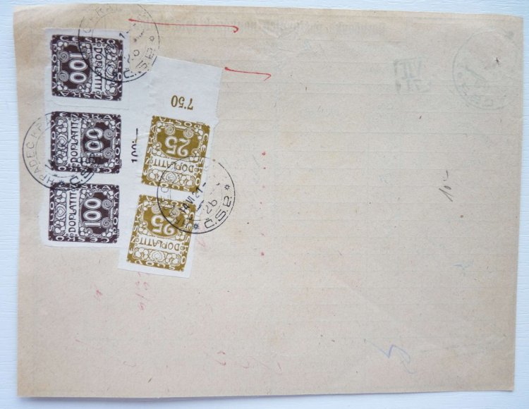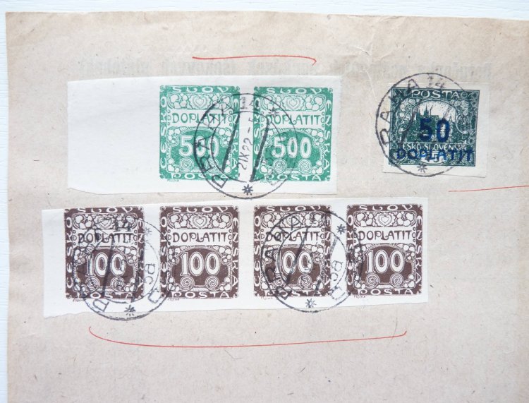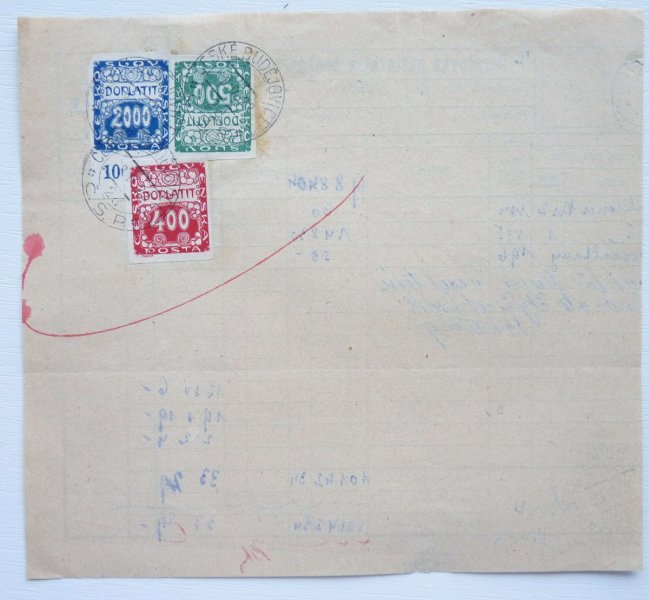 Another interesting group of delivery cards - mixed franking, a lot of defects, new variants, taken over the stamp at the beginning of the Republic of higher denominations - accounting for more cards that specific display card delivery, ... more, they found .....