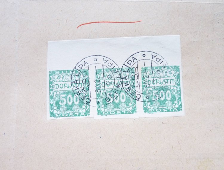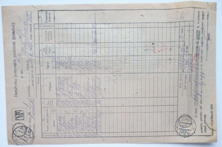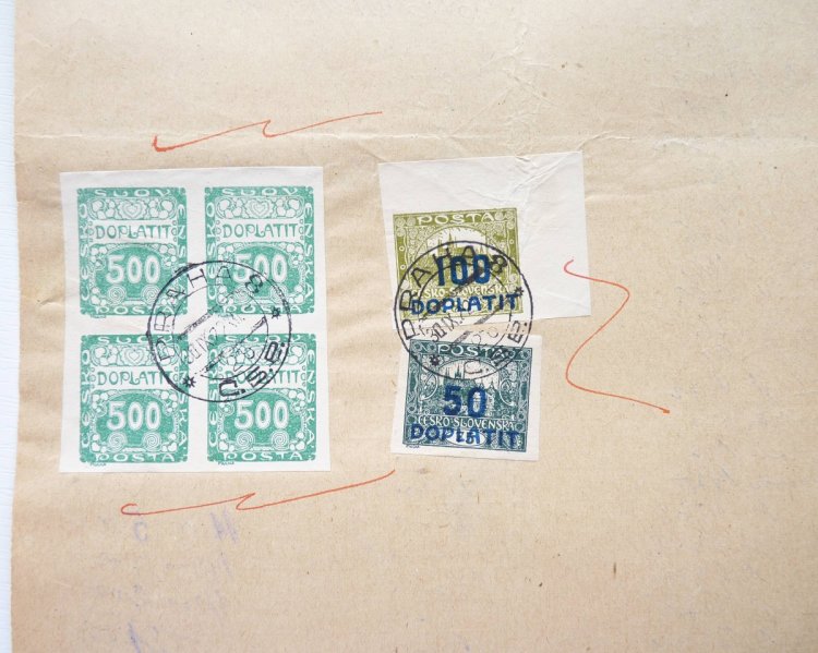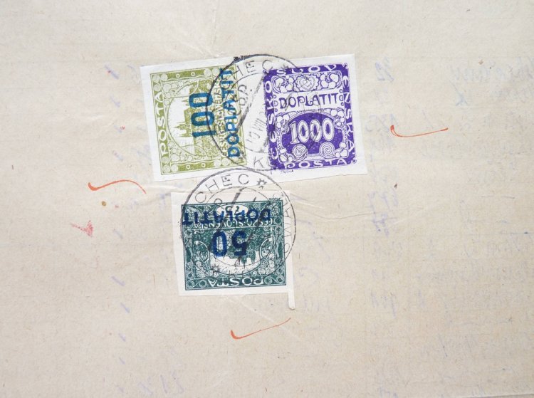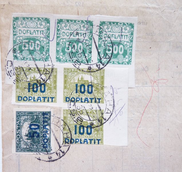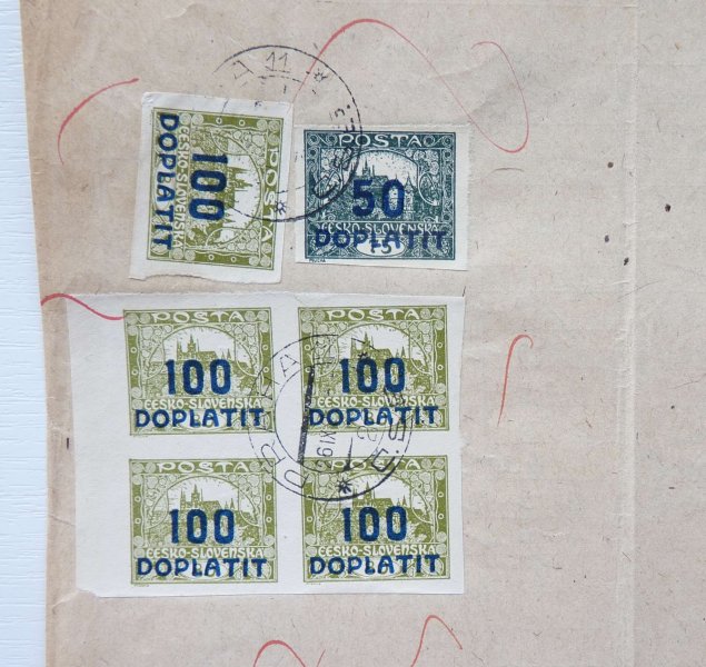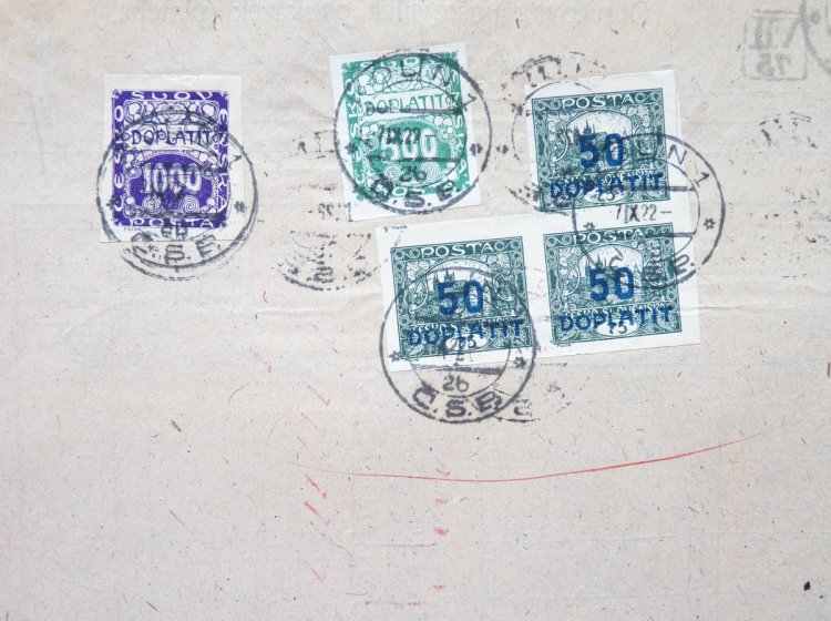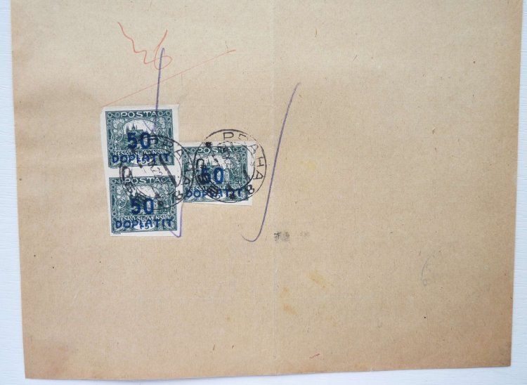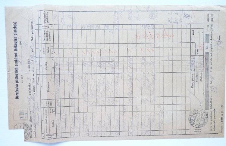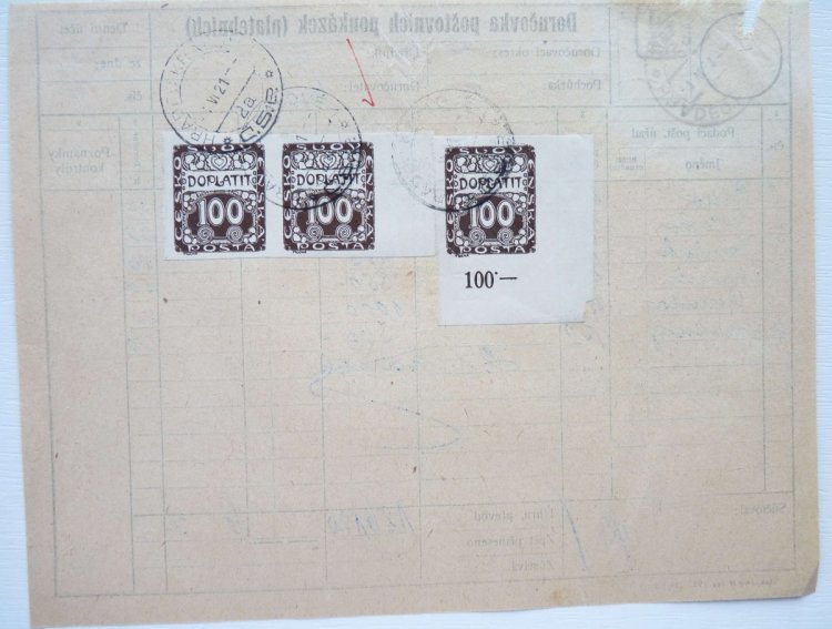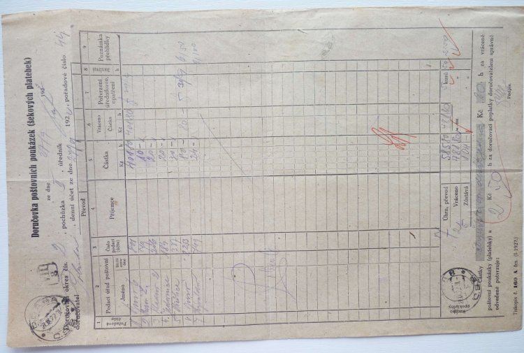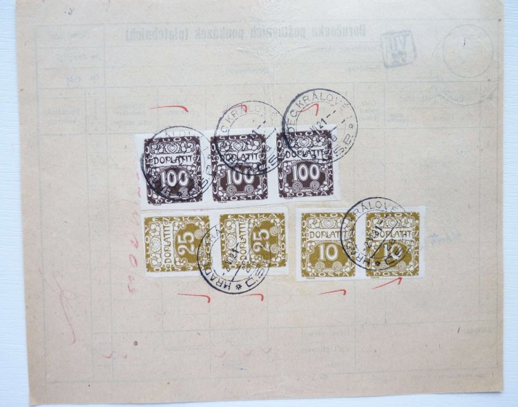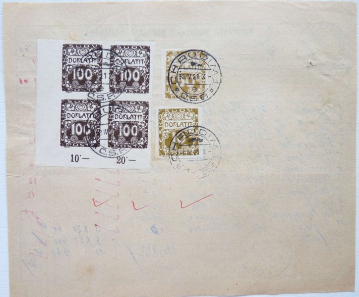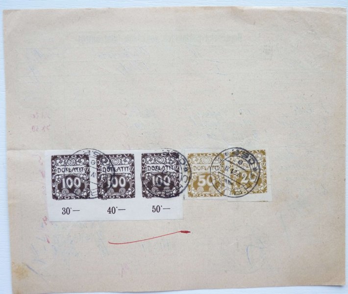 Another interesting group of delivery cards - mixed franking, a lot of defects, new variants, taken over the stamp at the beginning of the Republic of higher denominations - accounting for more cards that specific display card delivery, ... more, they found .....