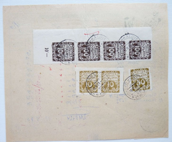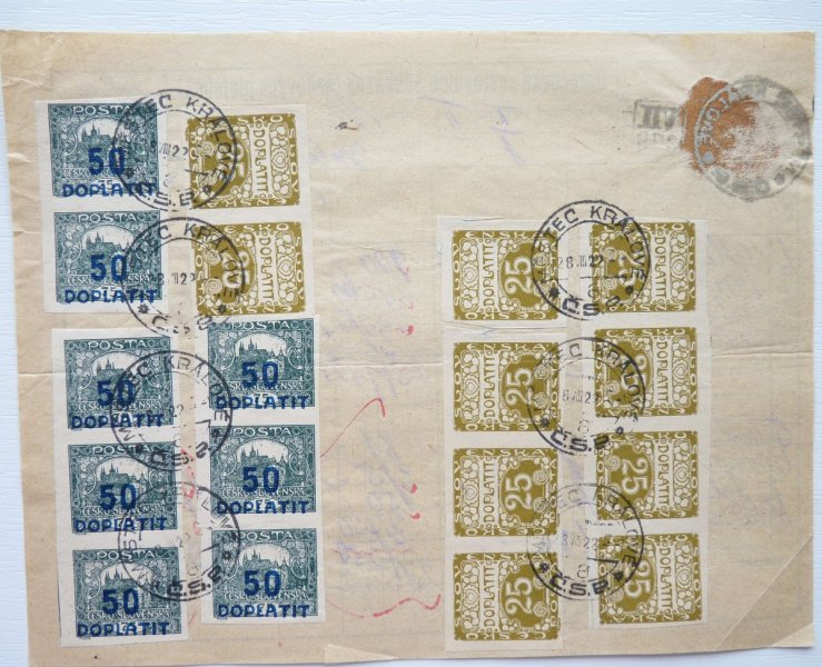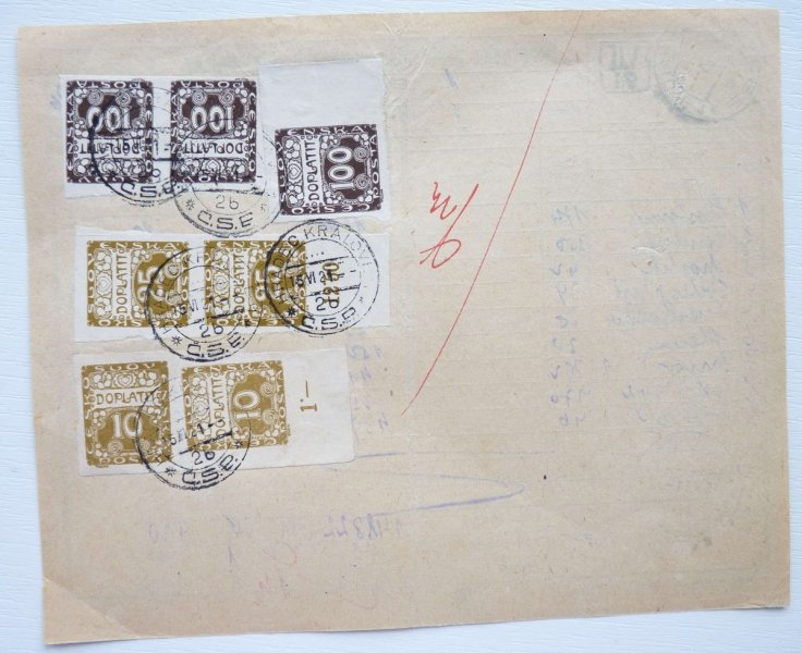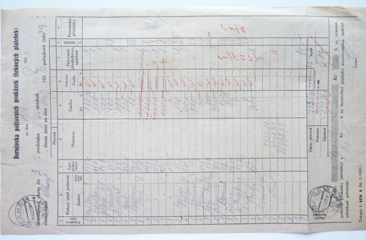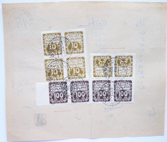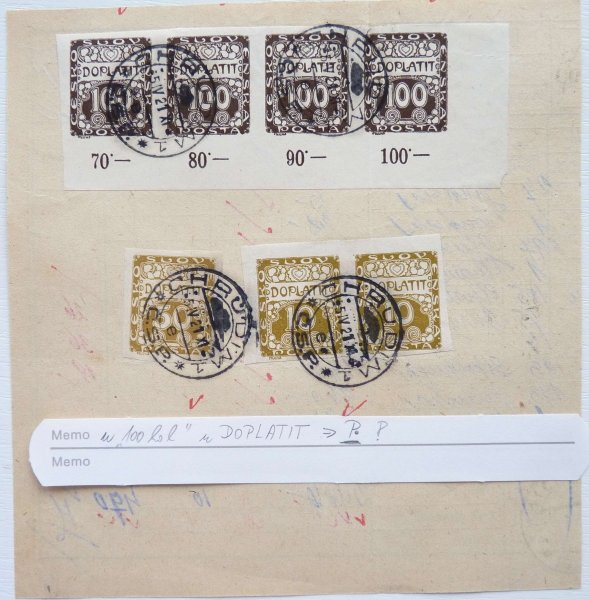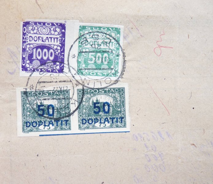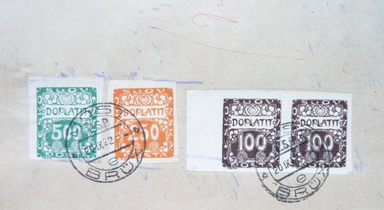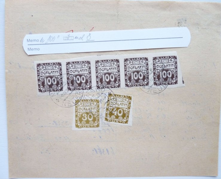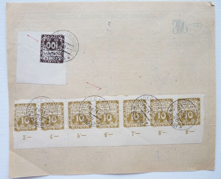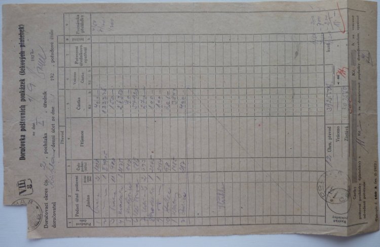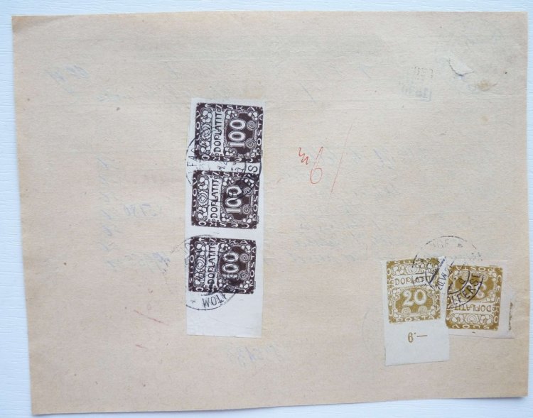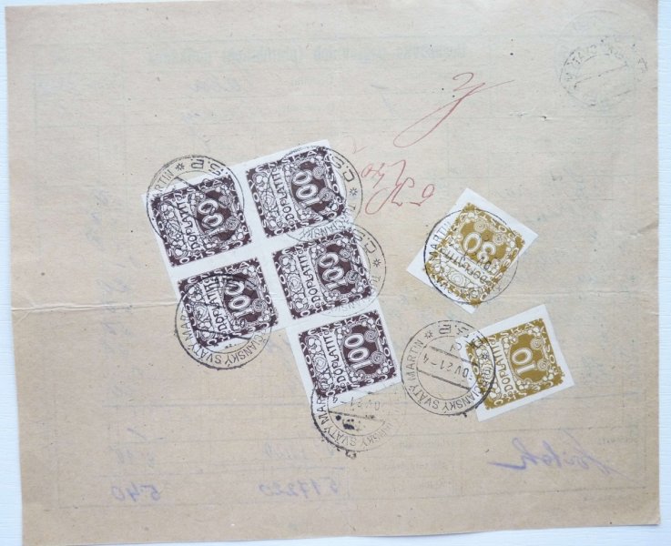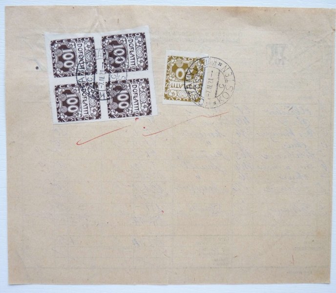 Another interesting group of delivery cards - mixed franking, a lot of defects, new variants, taken over the stamp at the beginning of the Republic of higher denominations - accounting for more cards that specific display card delivery, ... more, they found .....