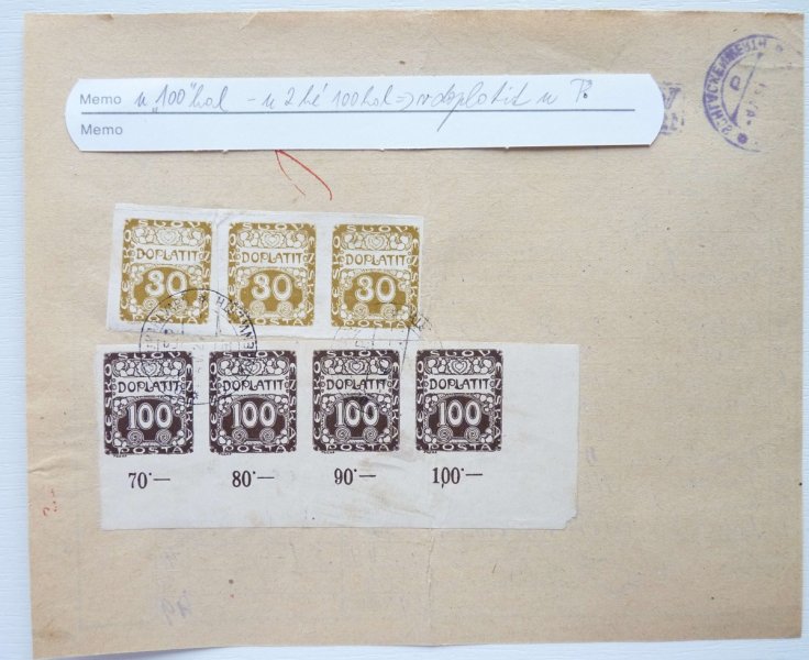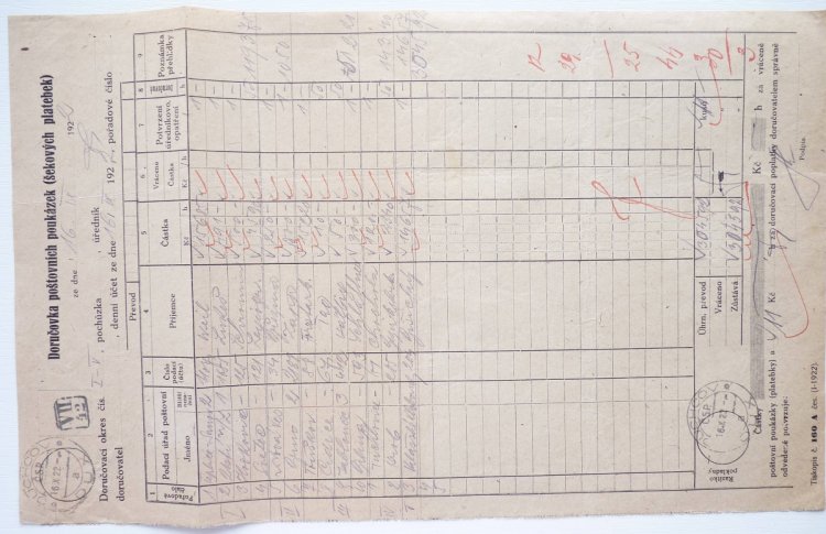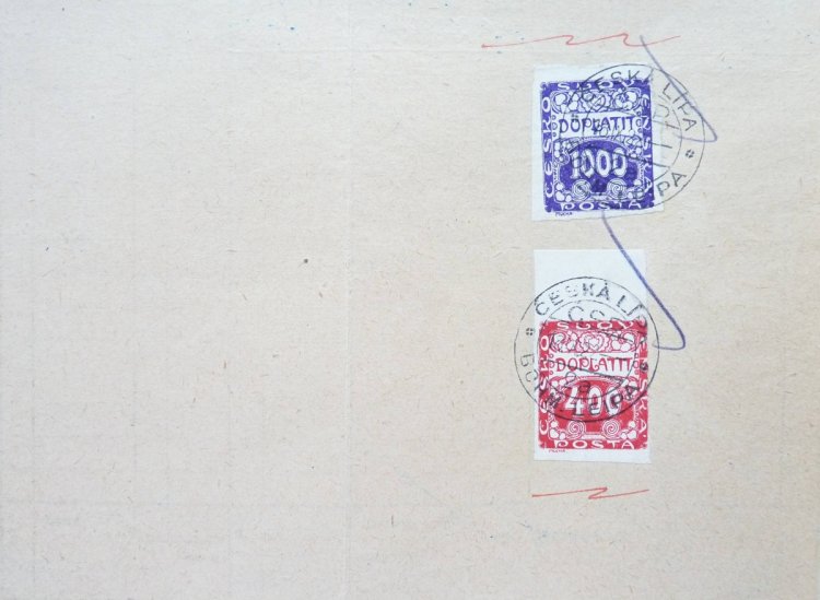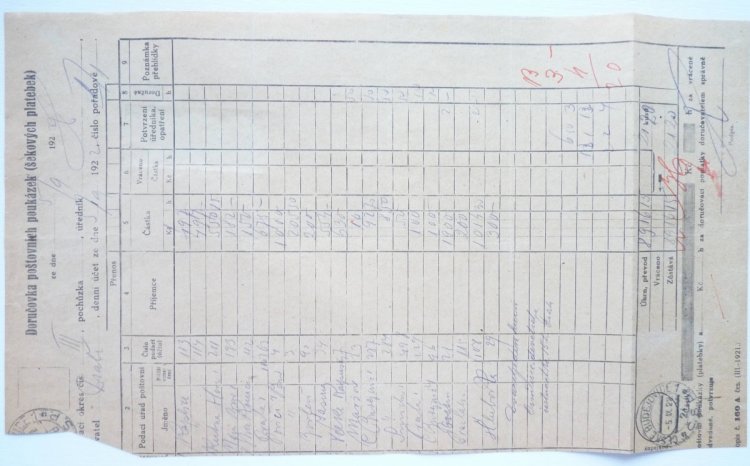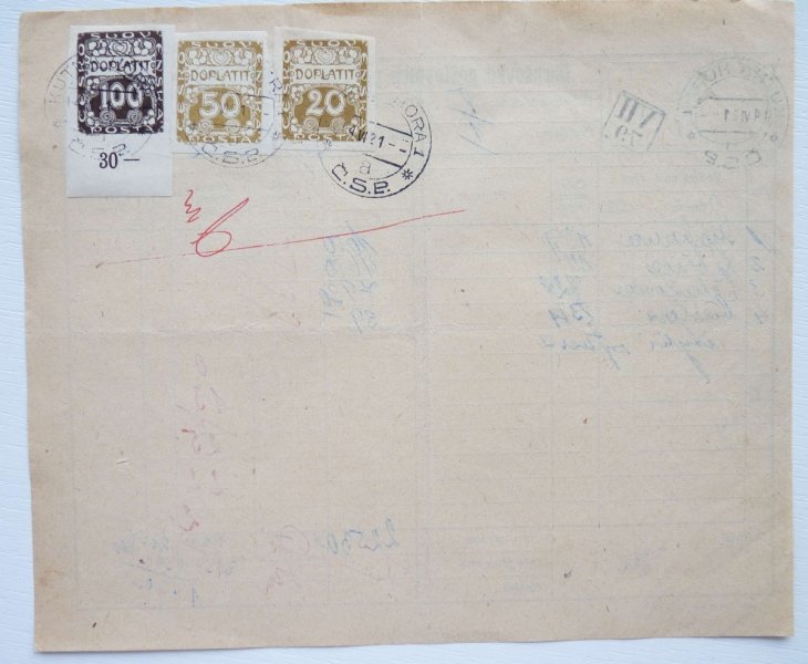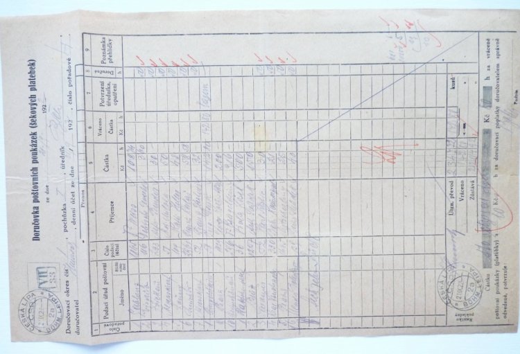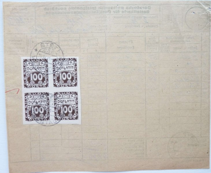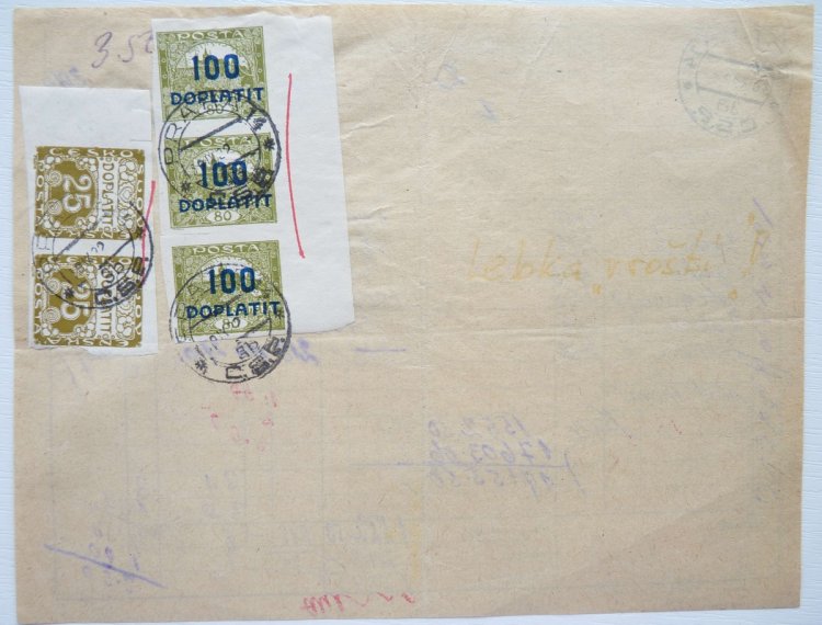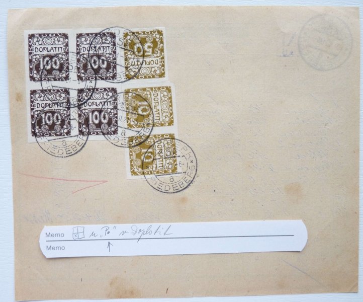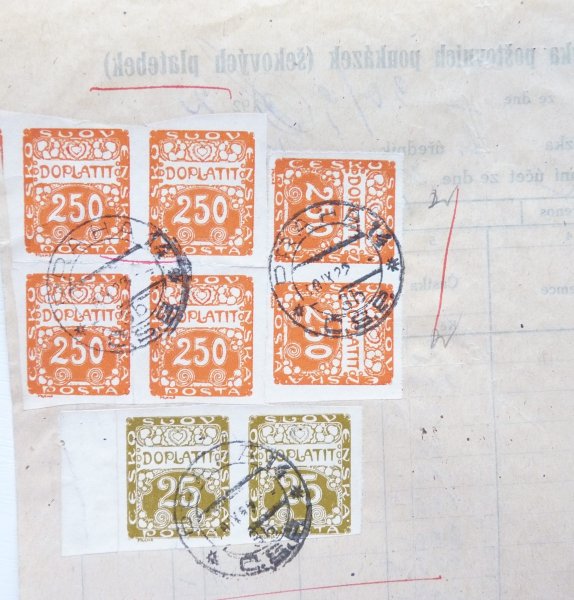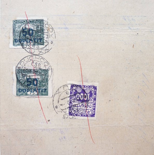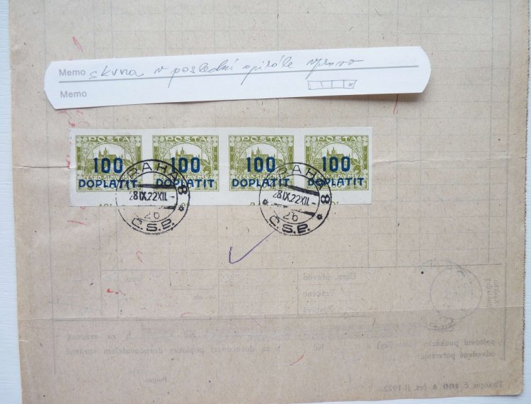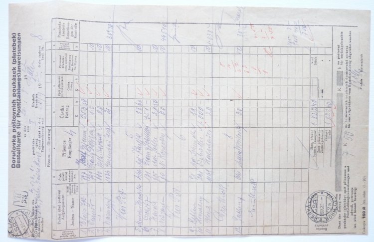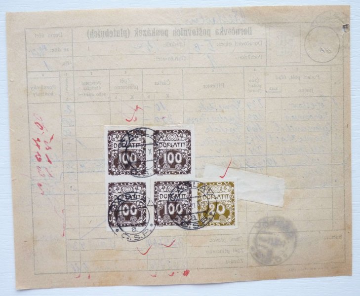 Another interesting group of delivery cards - mixed franking, a lot of defects, new variants, taken over the stamp at the beginning of the Republic of higher denominations - accounting for more cards that specific display card delivery, ... more, they found .....