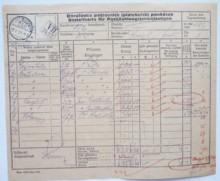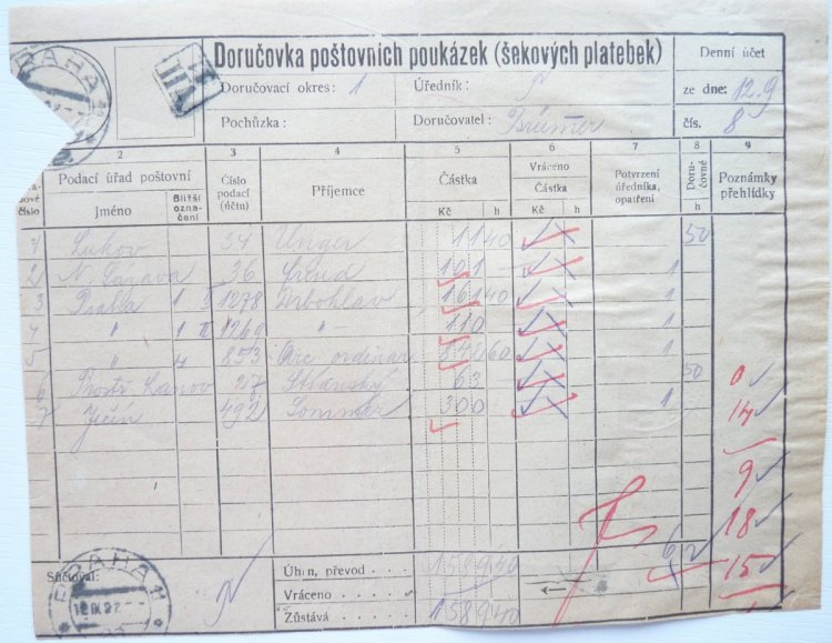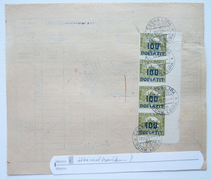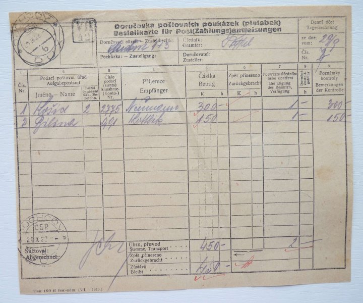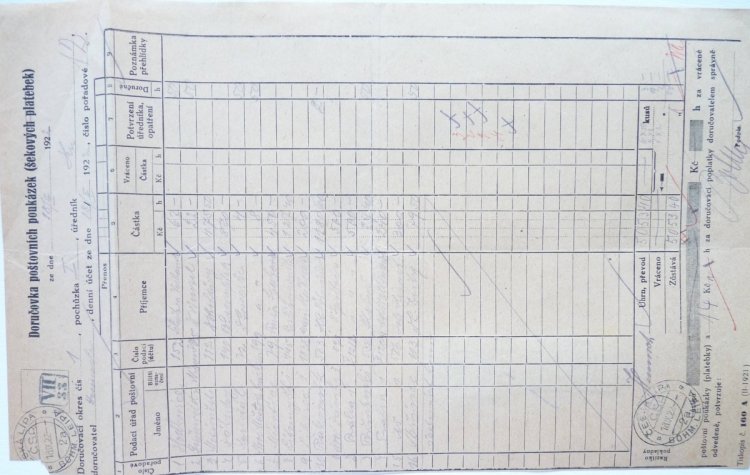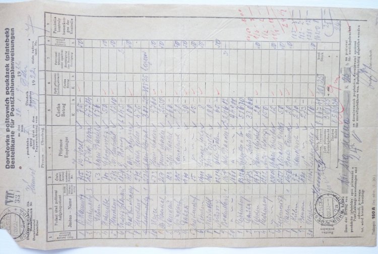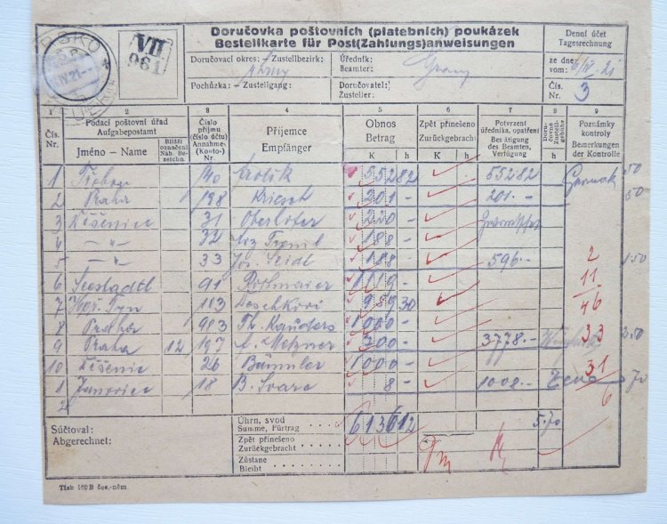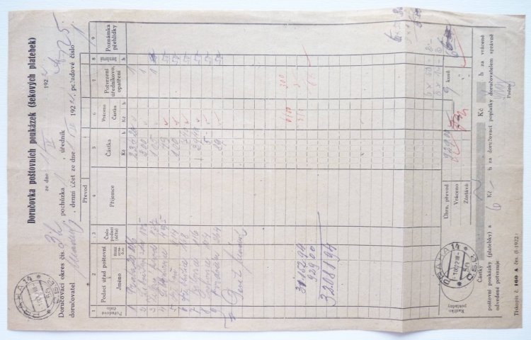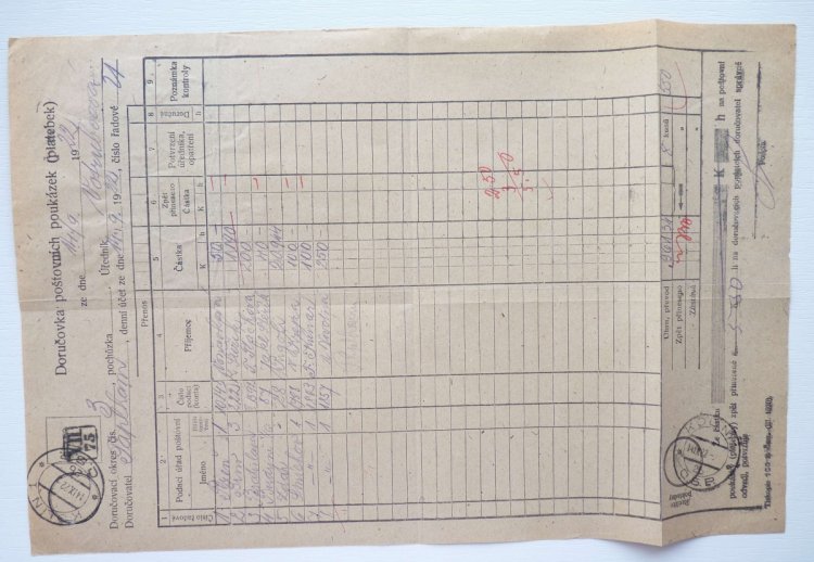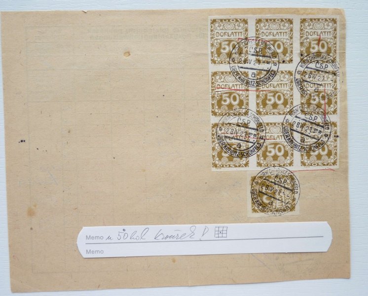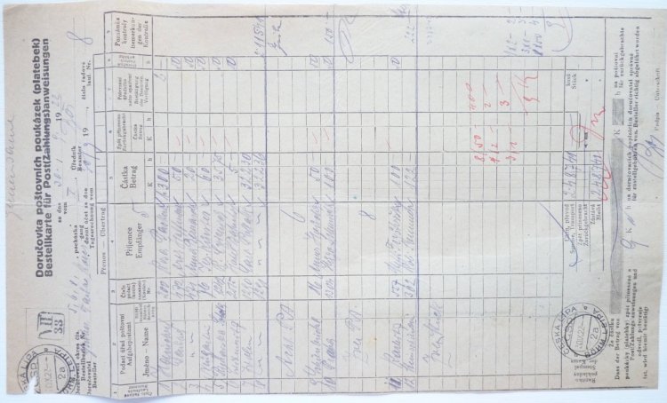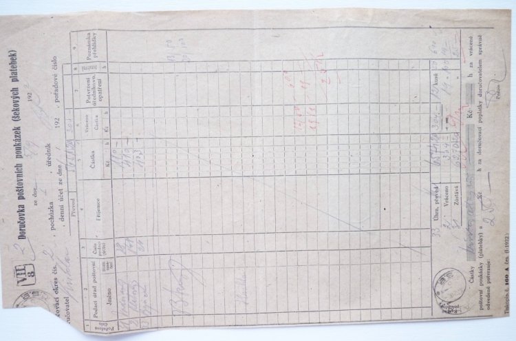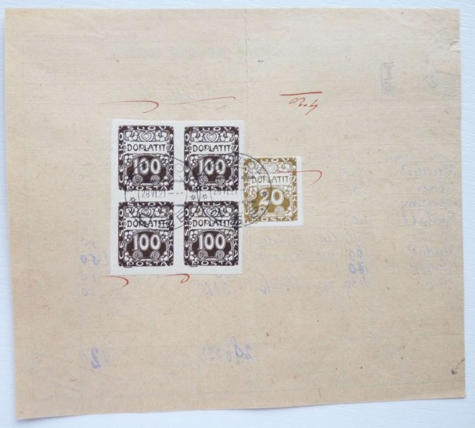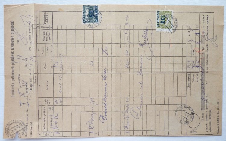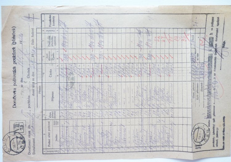 Another interesting group of delivery cards - mixed franking, a lot of defects, new variants, taken over the stamp at the beginning of the Republic of higher denominations - accounting for more cards that specific display card delivery, ... more, they found .....