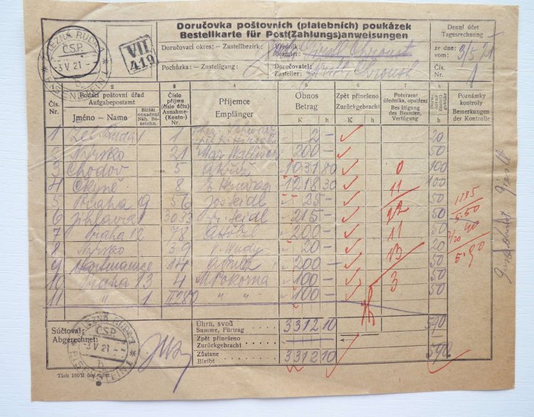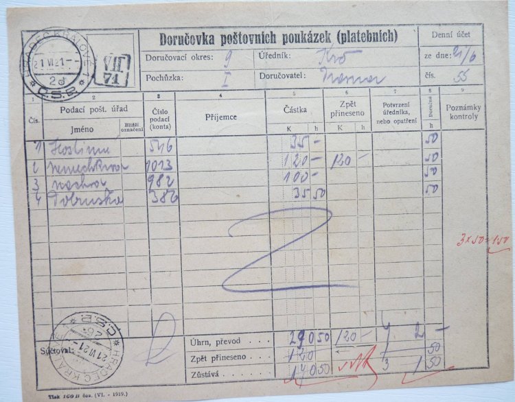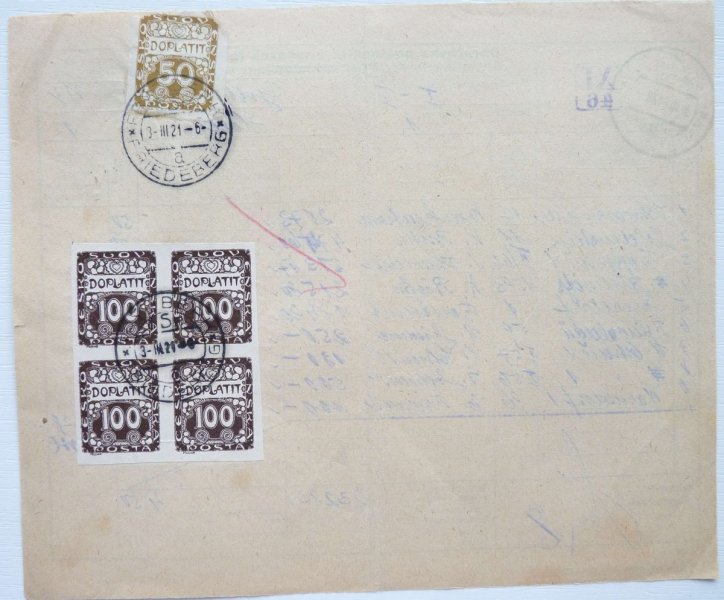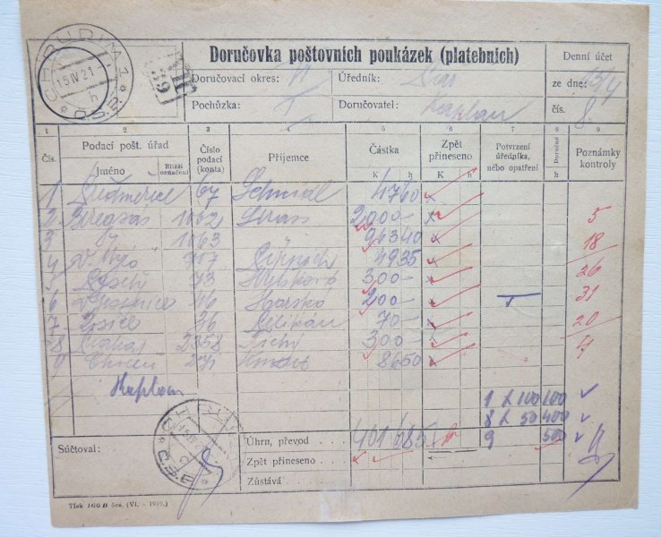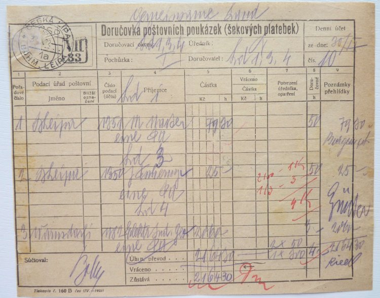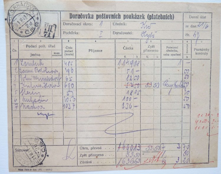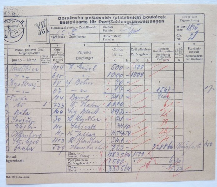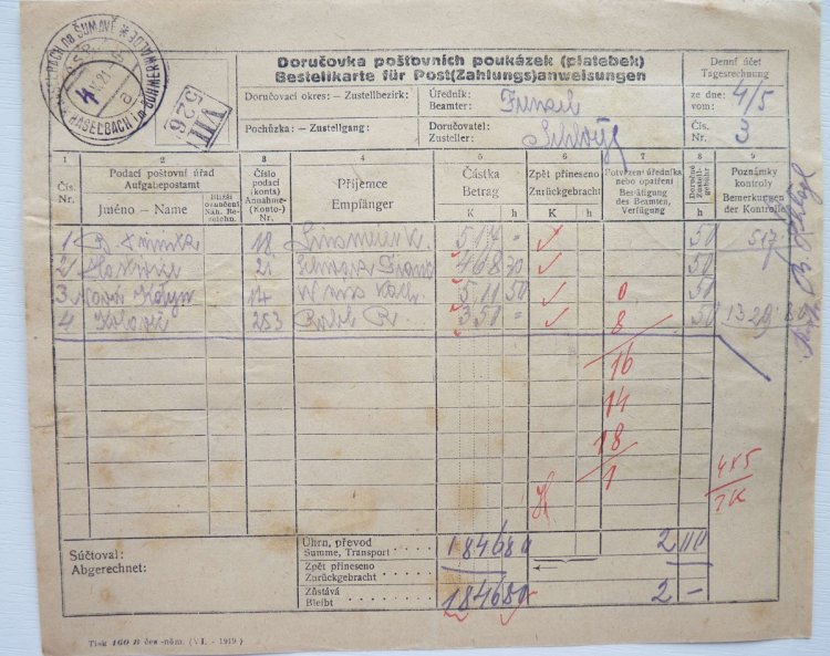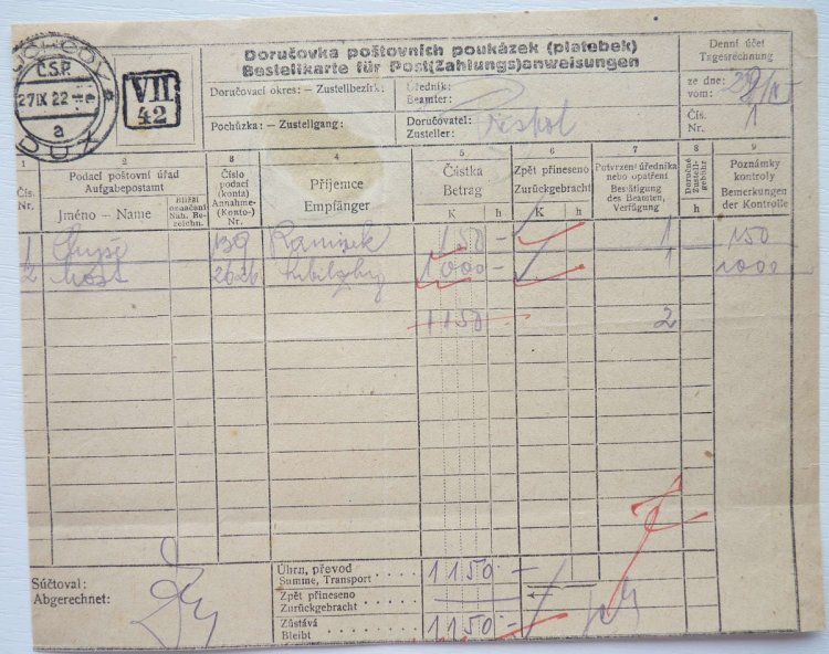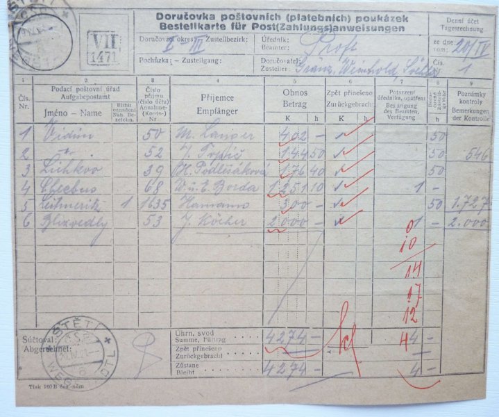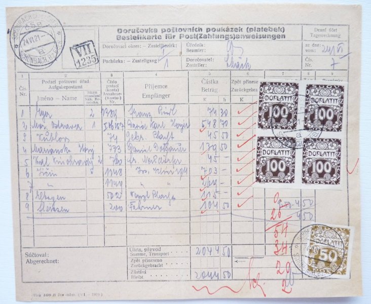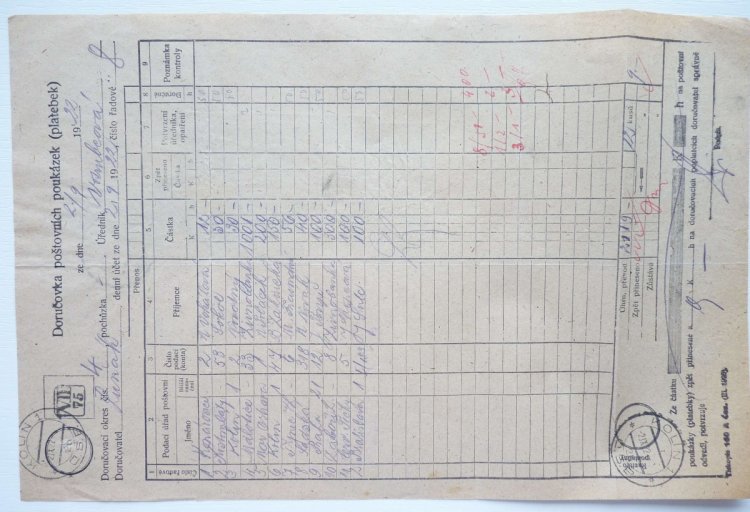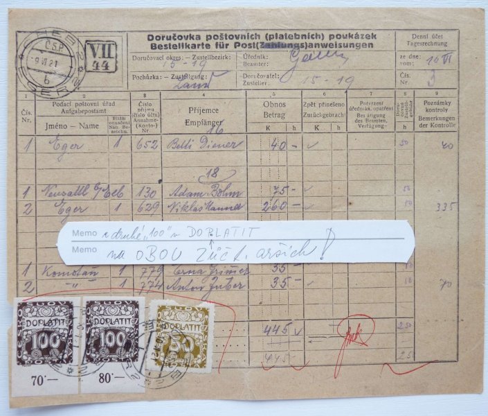 Another interesting group of delivery cards - mixed franking, a lot of defects, new variants, taken over the stamp at the beginning of the Republic of higher denominations - accounting for more cards that specific display card delivery, ... more, they found .....