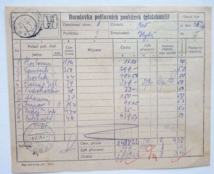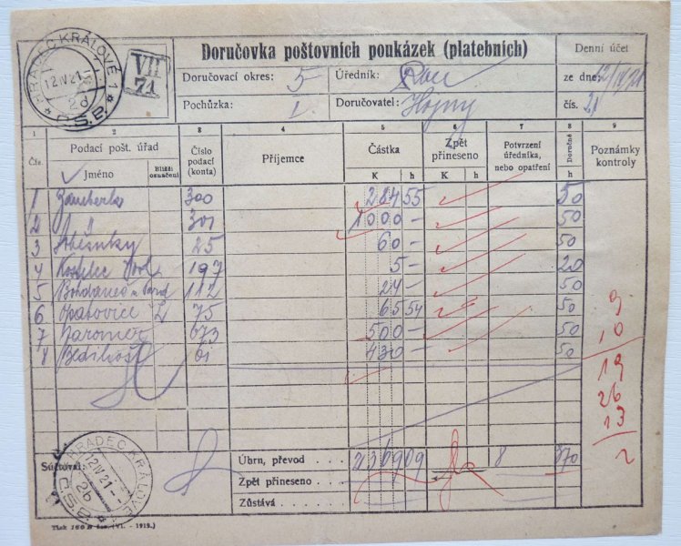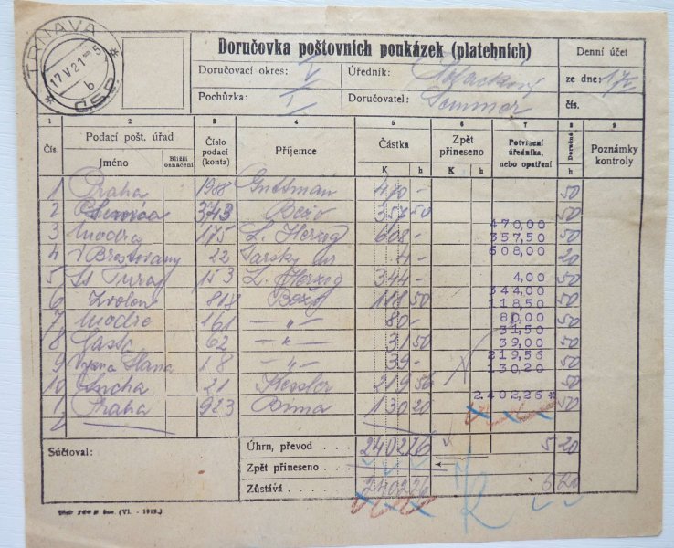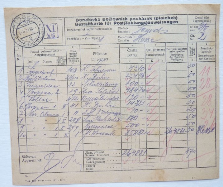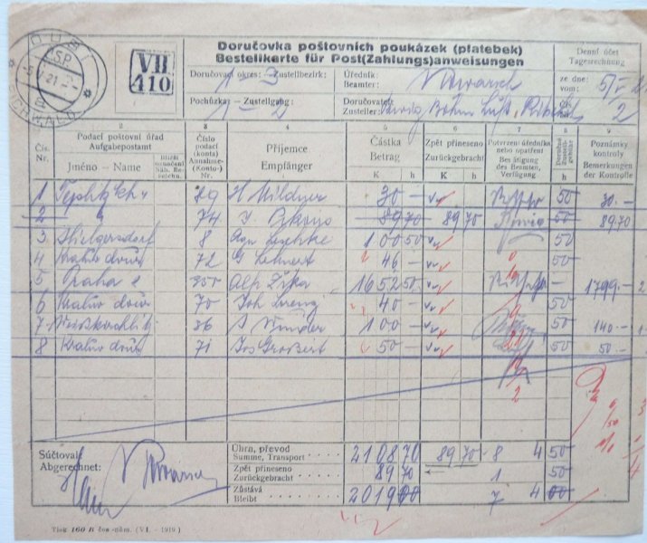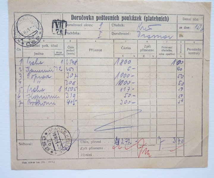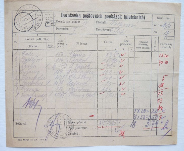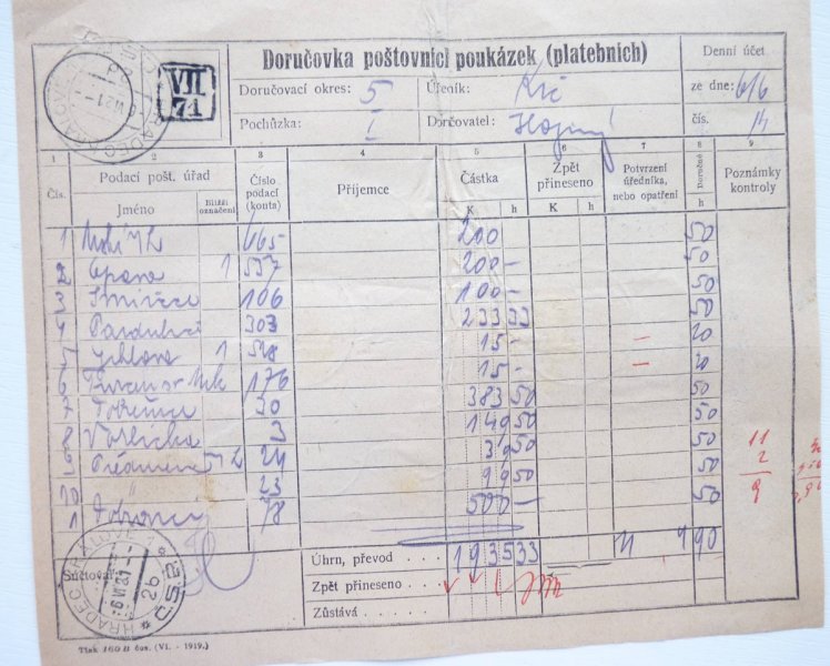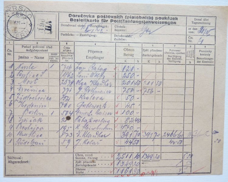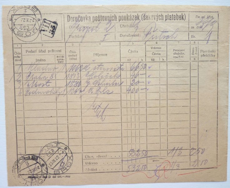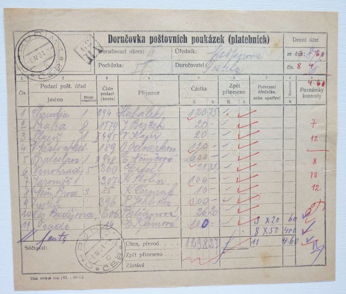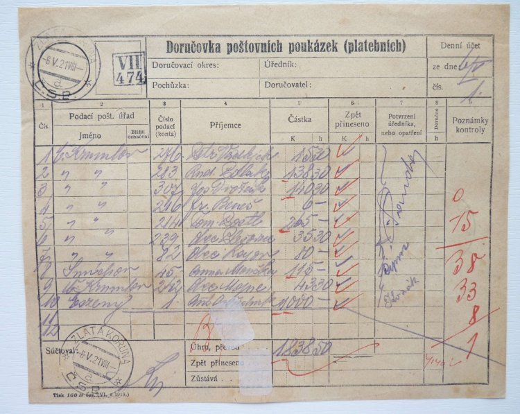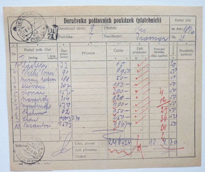 Another interesting group of delivery cards - mixed franking, a lot of defects, new variants, taken over the stamp at the beginning of the Republic of higher denominations - accounting for more cards that specific display card delivery, ... more, they found .....