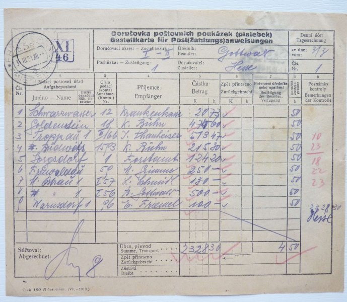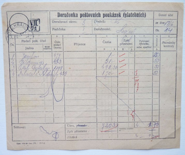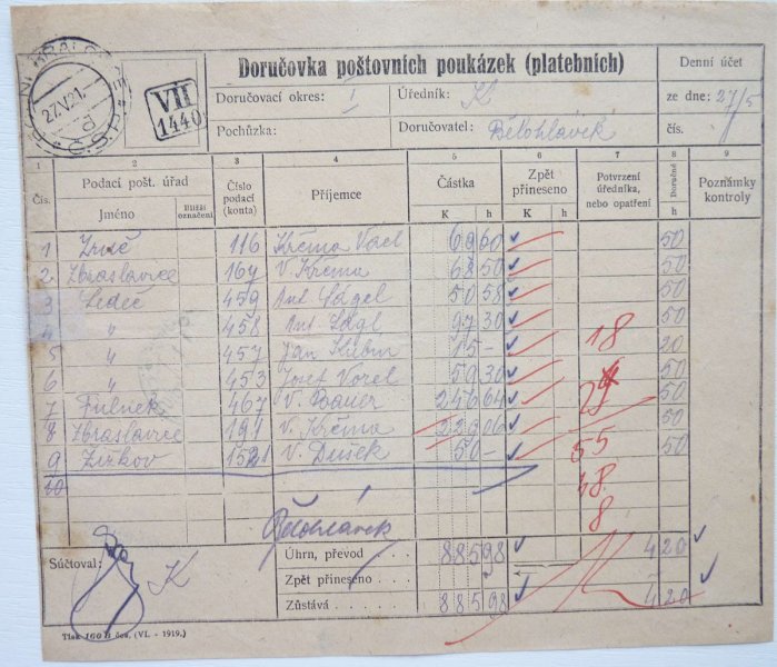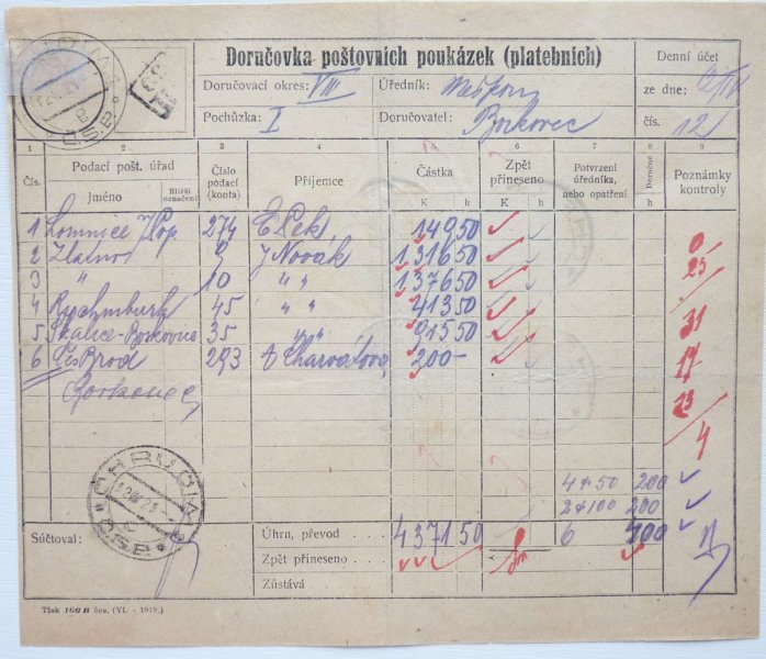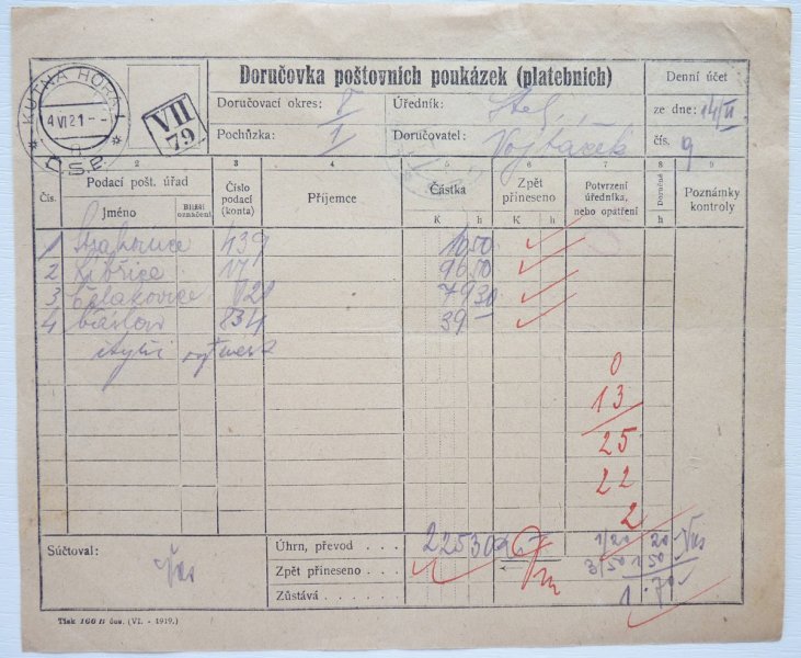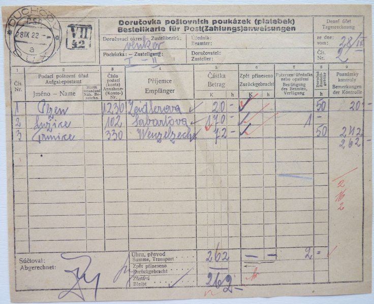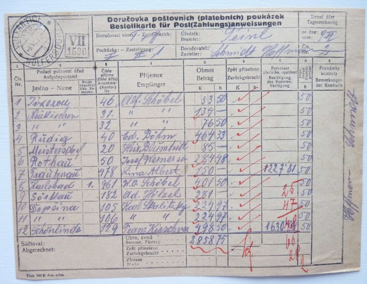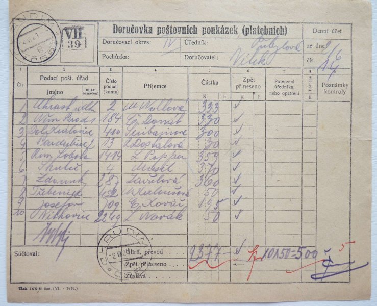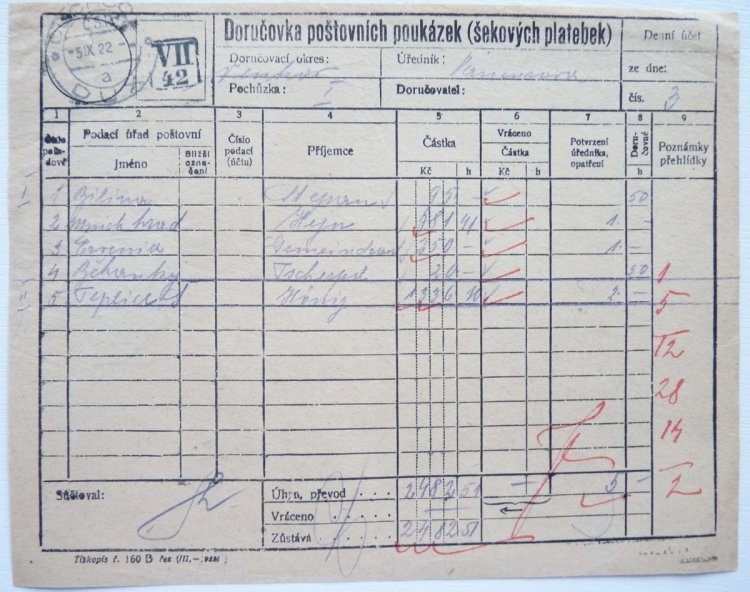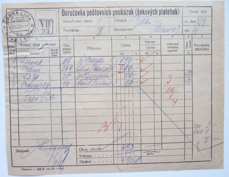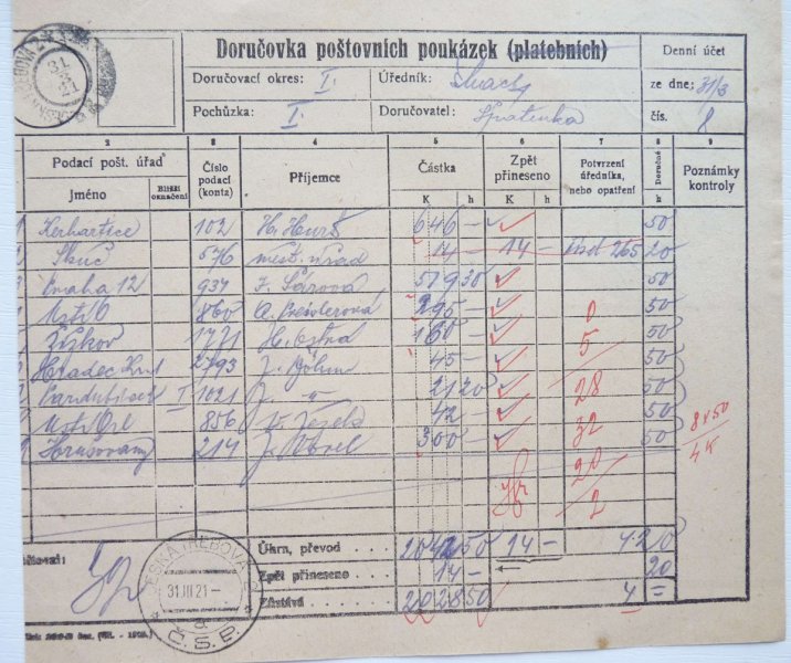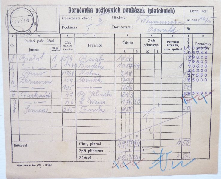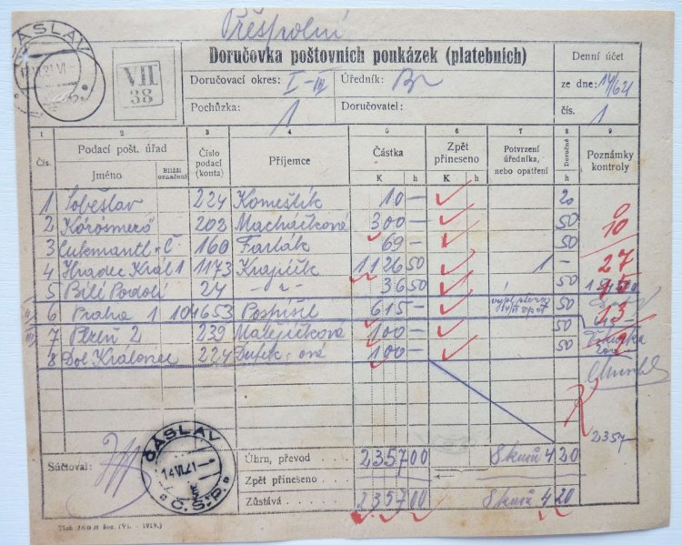 Another interesting group of delivery cards - mixed franking, a lot of defects, new variants, taken over the stamp at the beginning of the Republic of higher denominations - accounting for more cards that specific display card delivery, ... more, they found .....
