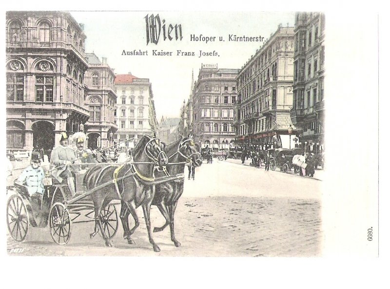Emperor Franz Joseph is riding in a main avenue in Pratr