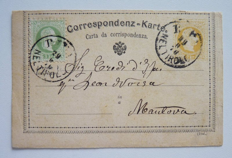 Austria - Stationery + 2 Kreuzer mark stamped 3 Kreuzer / stationeries Italian version
