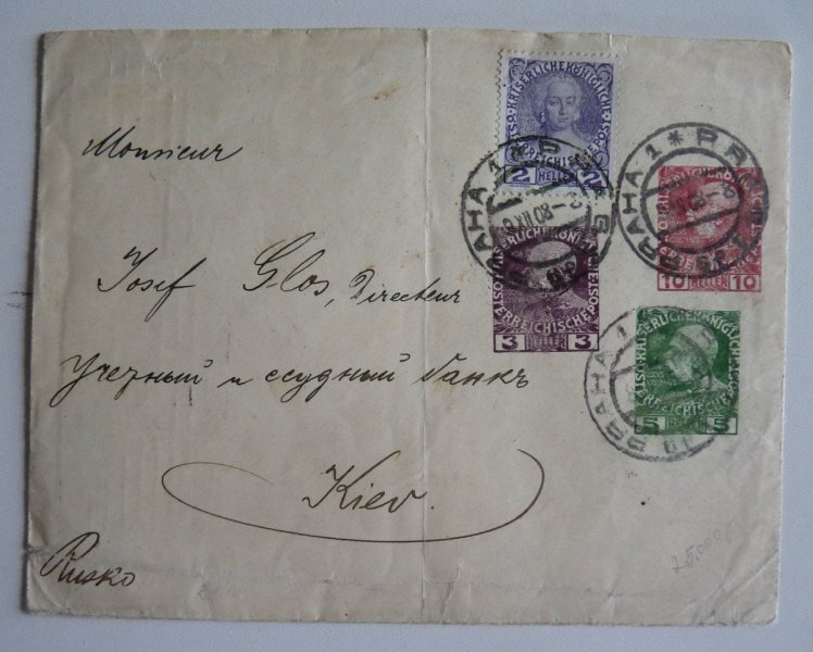 Austria - stationery printed with three stamps and stamping on both sides of the disbursing marks / Prague - Kiev
