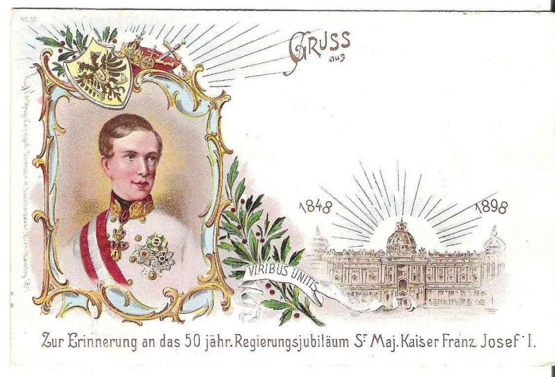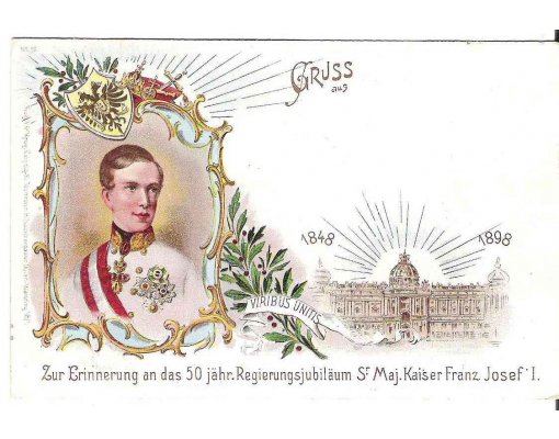 Beautiful litography, portrait of joung emperor Franz Joseph, 50th anniversary of his government