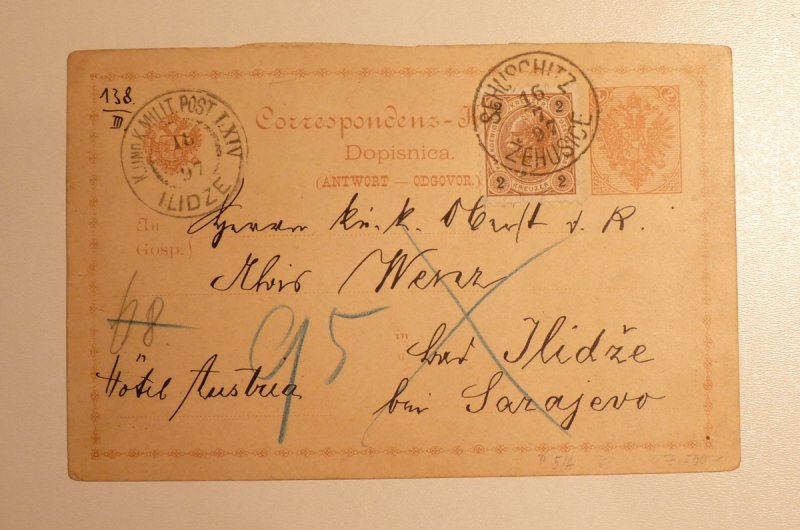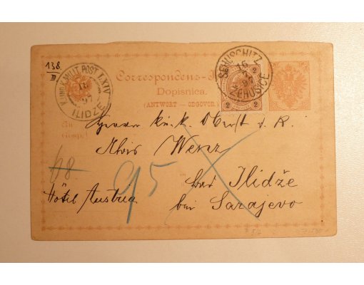 Reply part of car Bosnia and Herzegovina , evaluated by 2 Kr. Austrian stamp - RRR