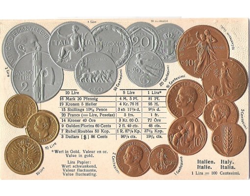 Postcards with coin - Italy