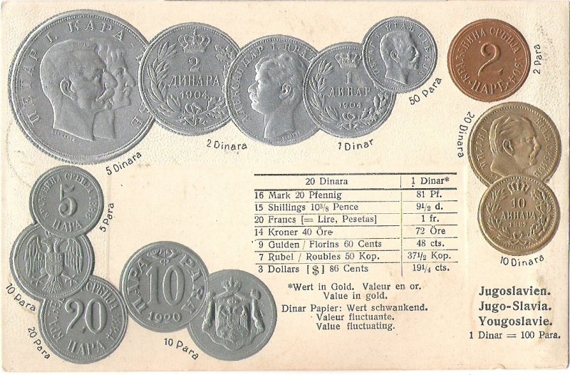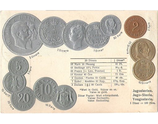 Postcards with coins - Yugoslavia
